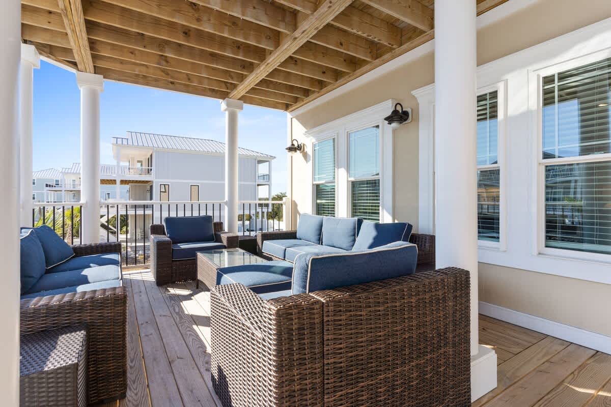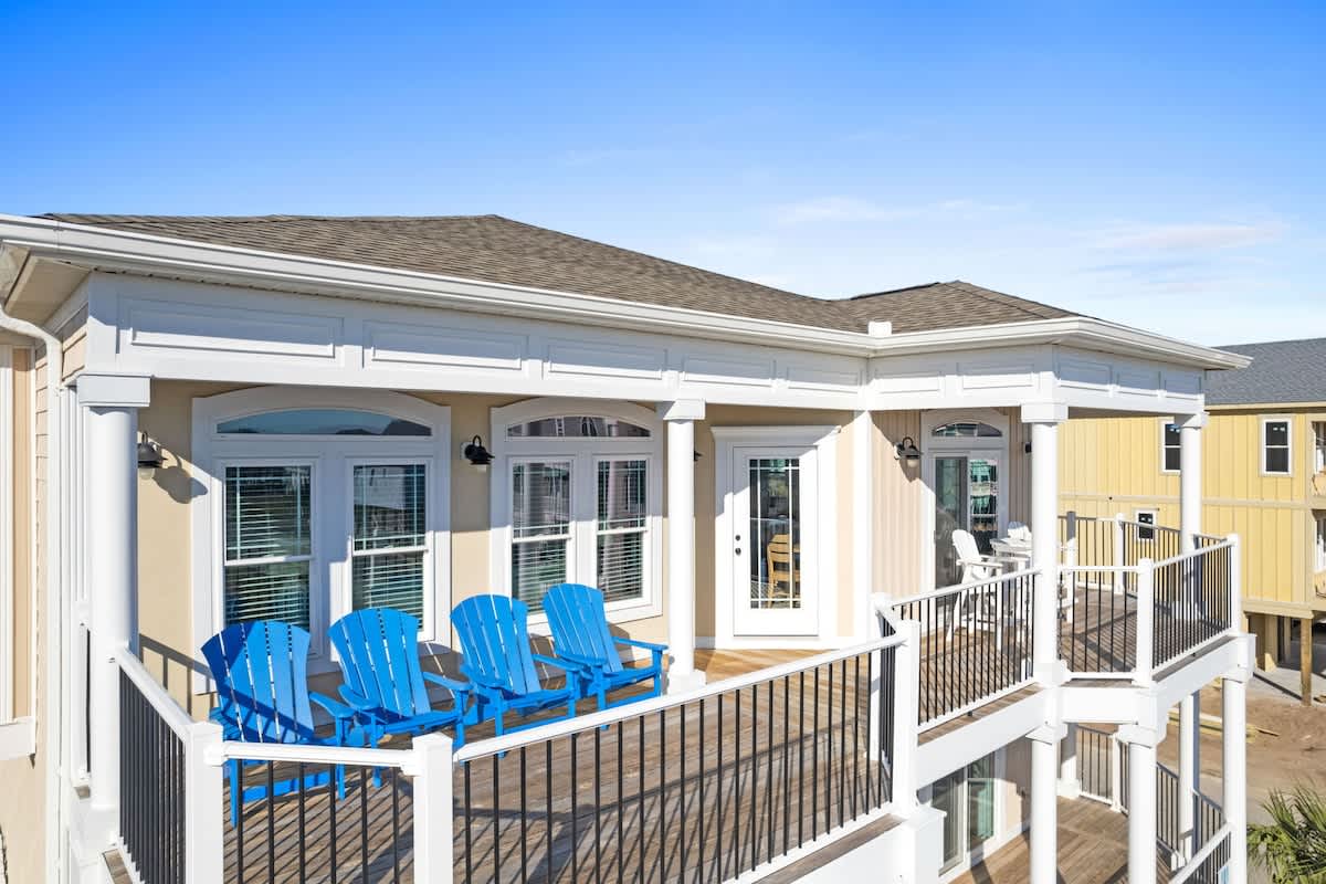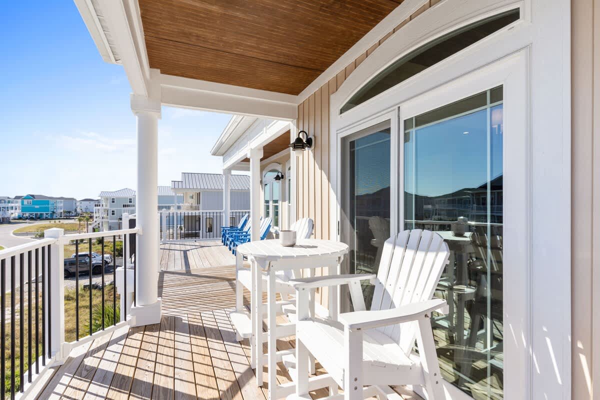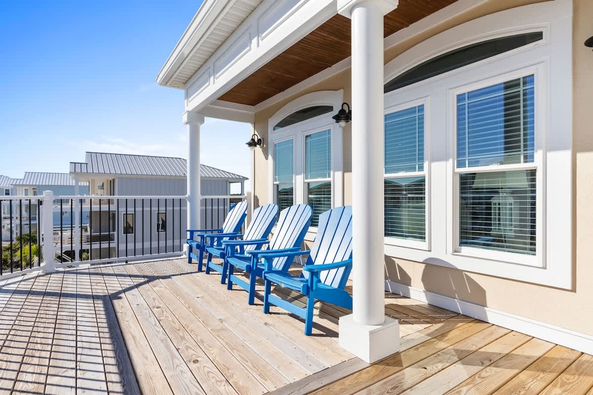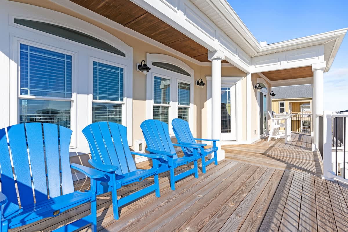 - Step outside to the top deck, where you'll find a high-top table with two chairs and four Adirondack chairs to soak in the stunning views.