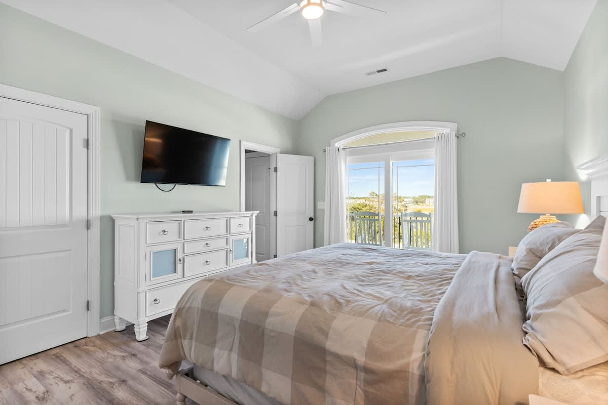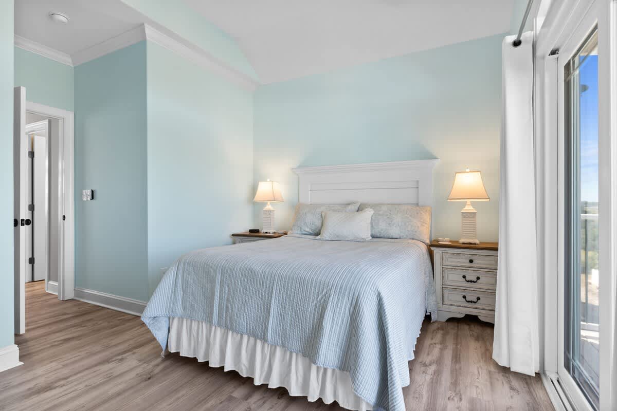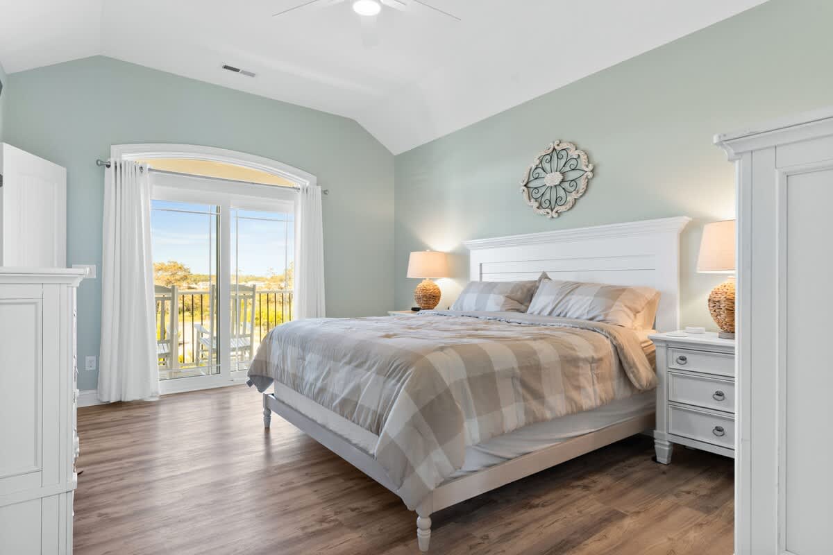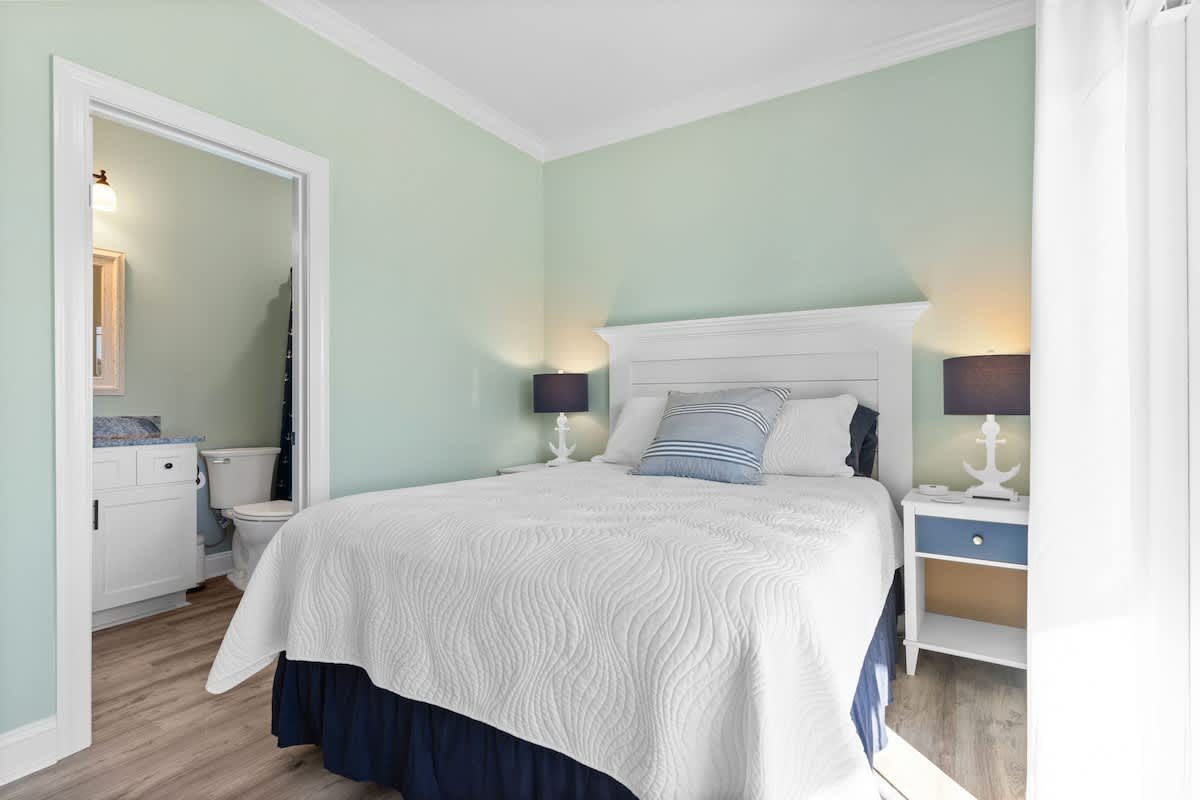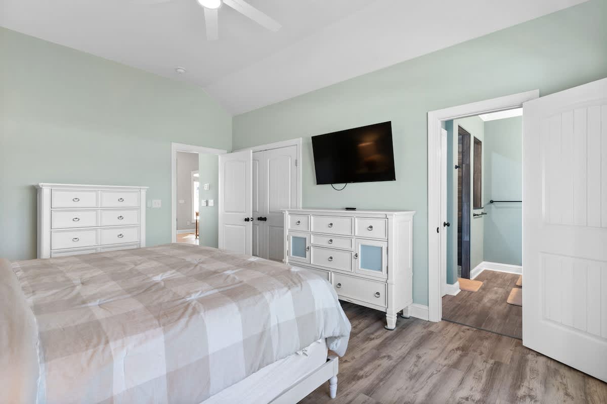 - The master suite is a true retreat, boasting a king bed and an attached bathroom with a walk-in shower and a double vanity.