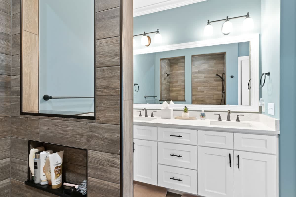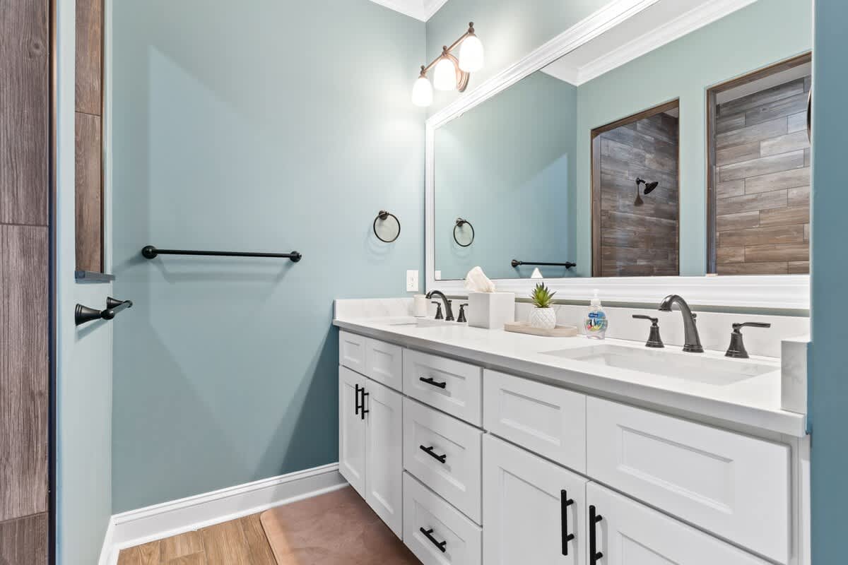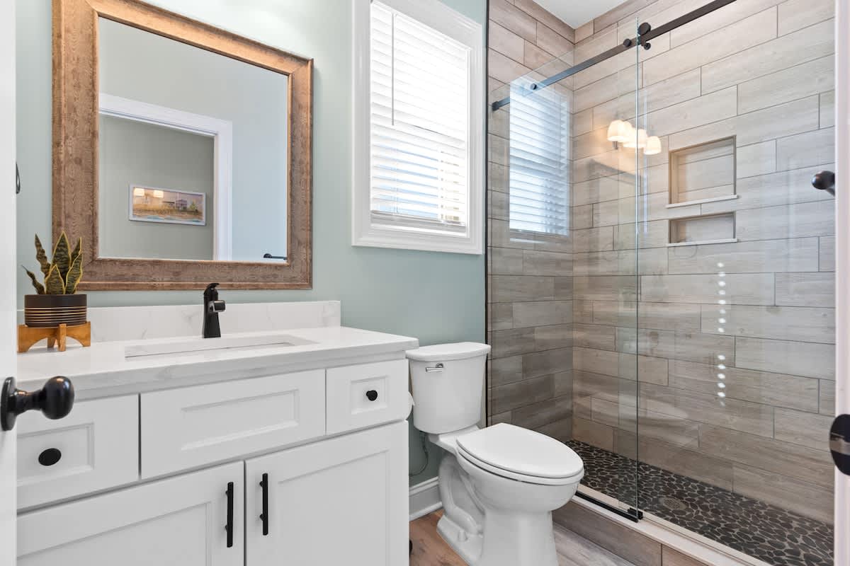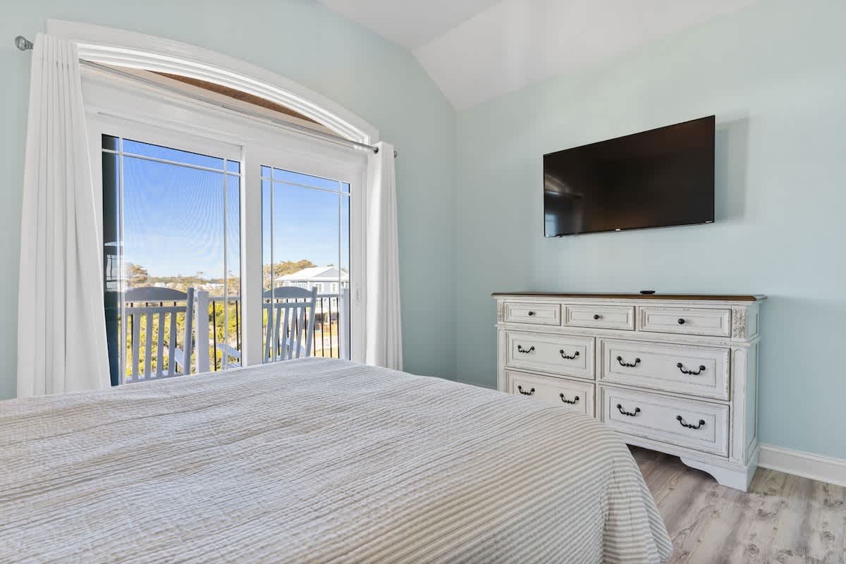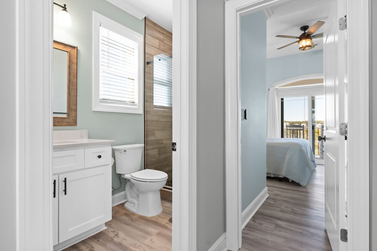 - The master suite is a true retreat, boasting a king bed and an attached bathroom with a walk-in shower and a double vanity.