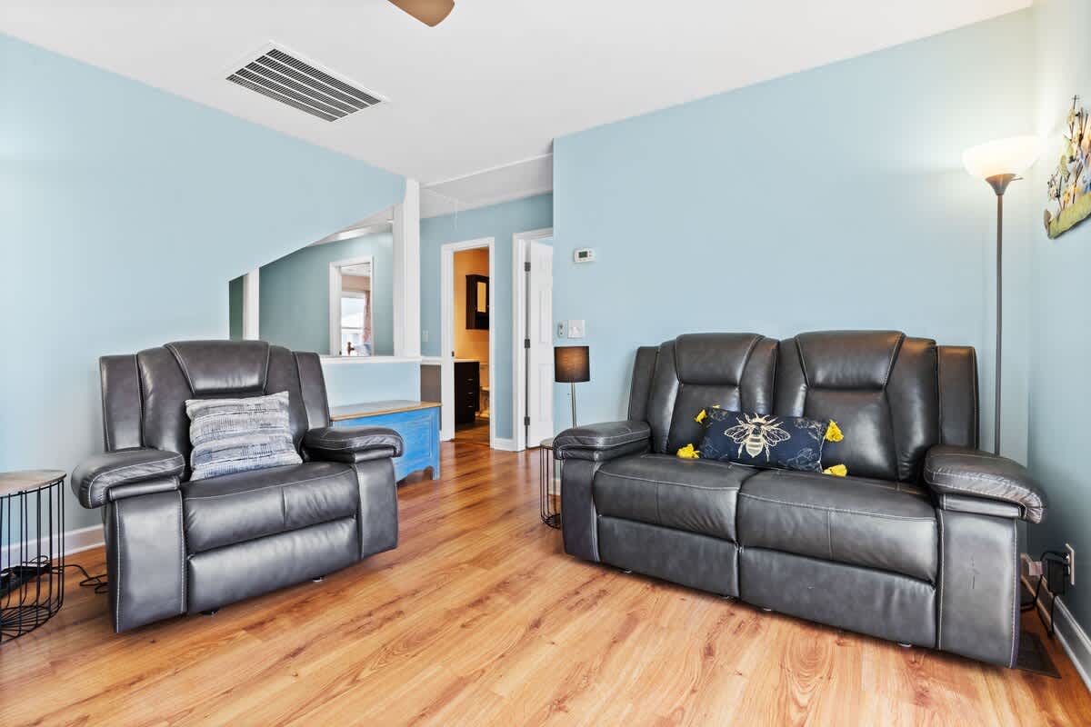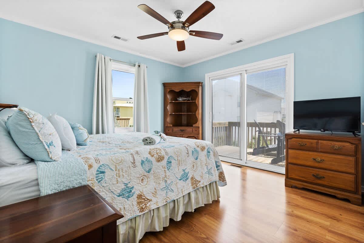 Relaxation and entertainment await in the loft area, where you can unwind while watching your favorite shows on the Roku TVs with Spectrum streaming service or delve into a captivating beach read. Step out onto the covered deck on the main level and embrace the Southern charm as you recline on the rocking chairs, enjoying the gentle coastal breeze. The upstairs king bedroom and loft area open up to an uncovered deck, where you can bask in the sun's warm rays.
