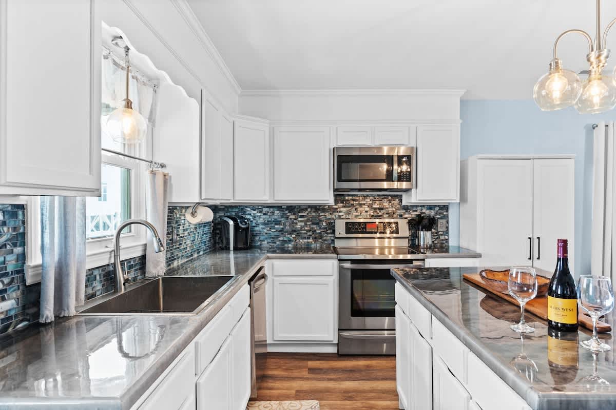 Rinse off the sand in the outdoor shower before heading inside to enjoy the central heat and air conditioning. Other amenities include a high-efficiency washer and dryer for your convenience and Wi-Fi connectivity to stay connected with loved ones back home.