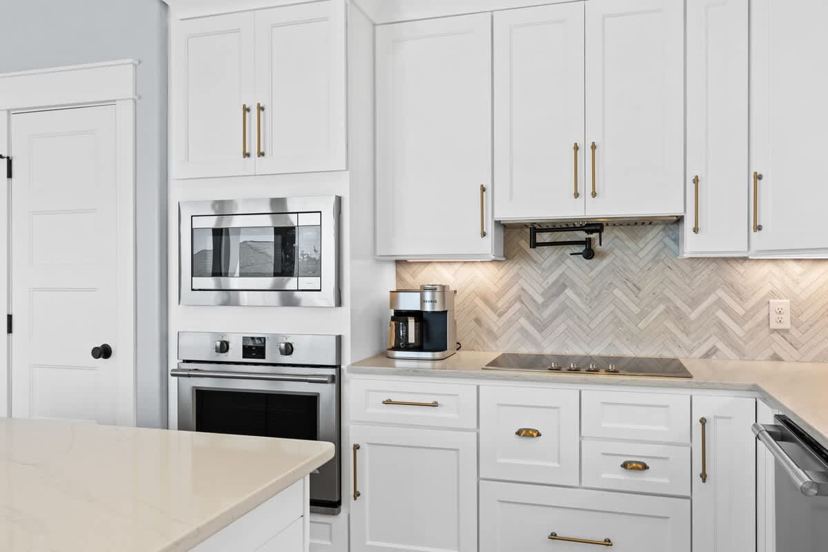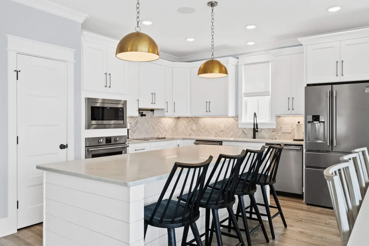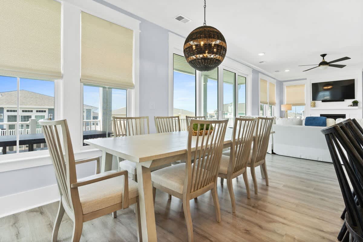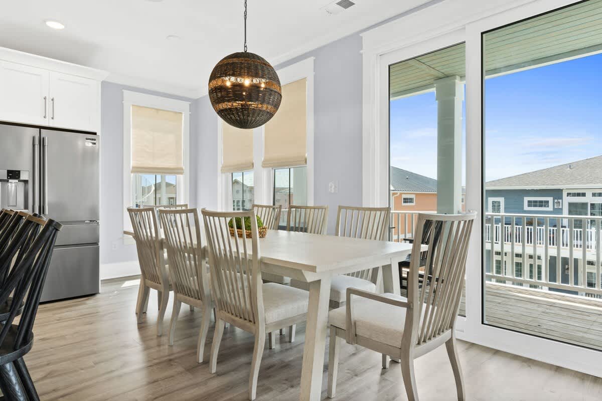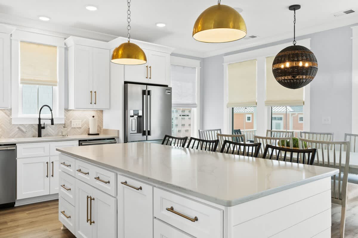 The fully equipped gourmet kitchen is a chef’s dream, boasting modern appliances, including 2 dishwashers, ample counter space, and all the essentials needed to whip up delicious meals. Enjoy culinary creations at the expansive eat-in kitchen table and island, or take advantage of the outdoor dining on the 2nd floor. This kitchen is fully equipped with all essential kitchenware, prepping and cleaning up after meals will be a breeze, even for large groups!