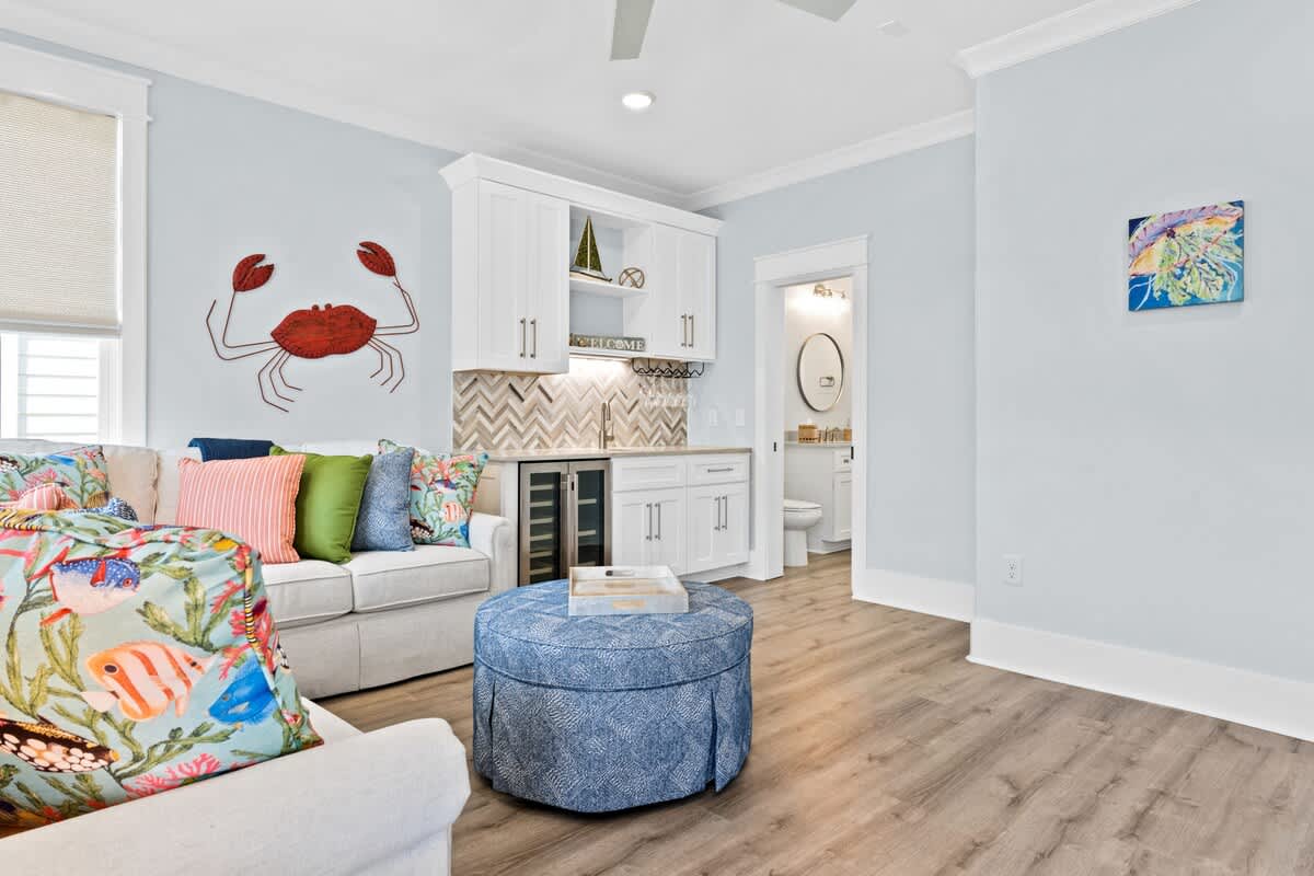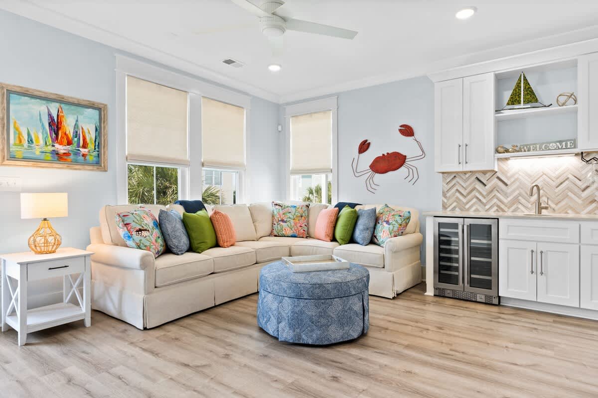 On the first floor, guests will love spending time in the fully stocked wet bar, hanging out on the sectional sofa, an assortment of games that everyone in your group will enjoy, there's something for everyone. It's the perfect space to let loose and create memories that will last a lifetime. Also on the first floor you will find 3 bedrooms.
