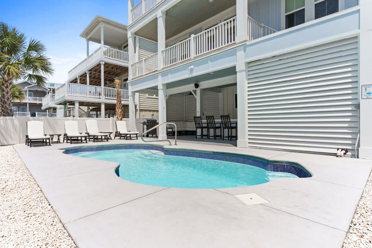 As a guest at “Blue Heaven”, you'll also have access to “The Resort at OIB” community's amenity center and ocean front pool, located adjacent to the property. Take advantage of the additional pool access, bathrooms, a crab dock, and private beach access to enhance your vacation experience.