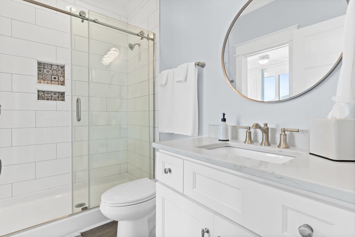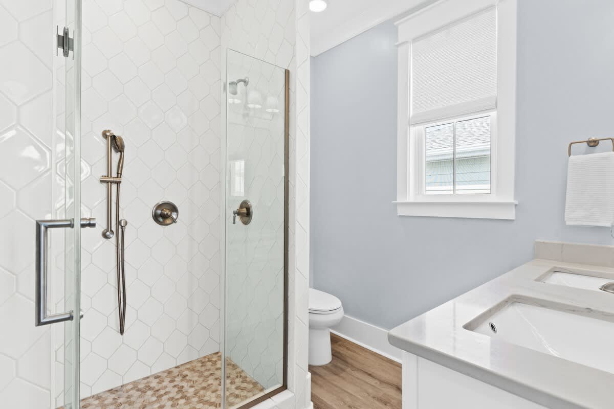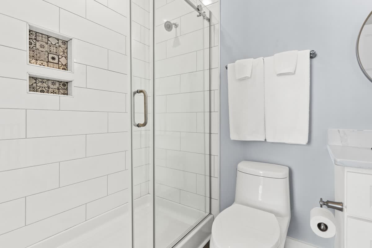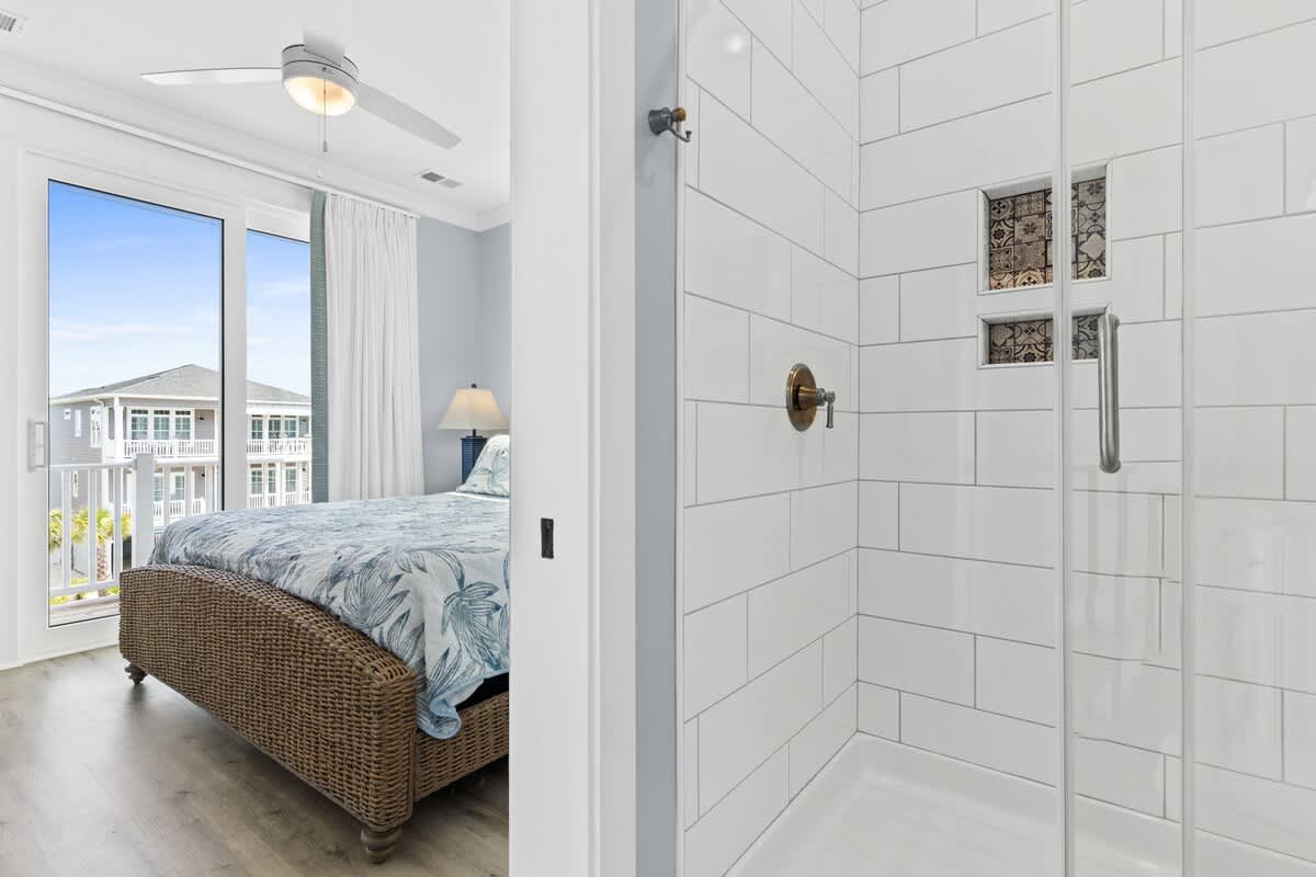 On this top floor you will find the primary suite that has an en suite bathroom with a beautiful walk in shower.