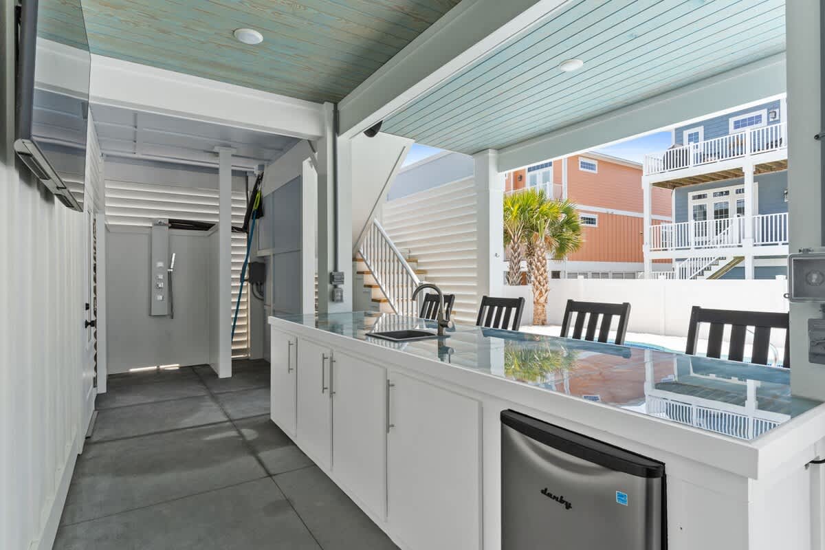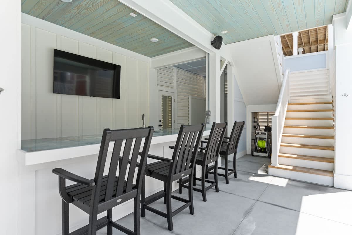 Step outside and enter a paradise that awaits you! . One of the standout features of this vacation rental is the private pool area. This area features a Tiki bar and a state-of-the-art Sonos sound system, making it the perfect place to unwind, soak up the sun, or grill out with the family! Enjoy your favorite drink and bask in the warm sun while listening to your favorite tunes. When you're ready to cool off, take a refreshing dip in the sparkling water or float on a pool noodle, all while soaking up the sun's rays.