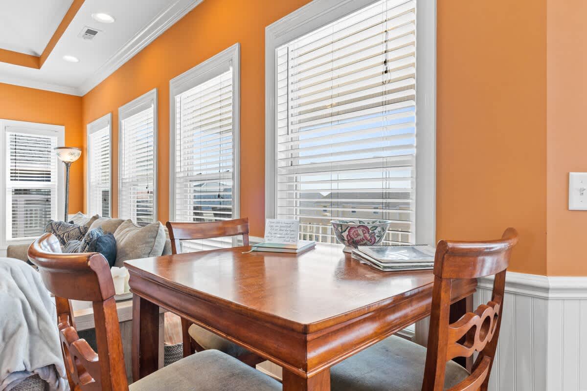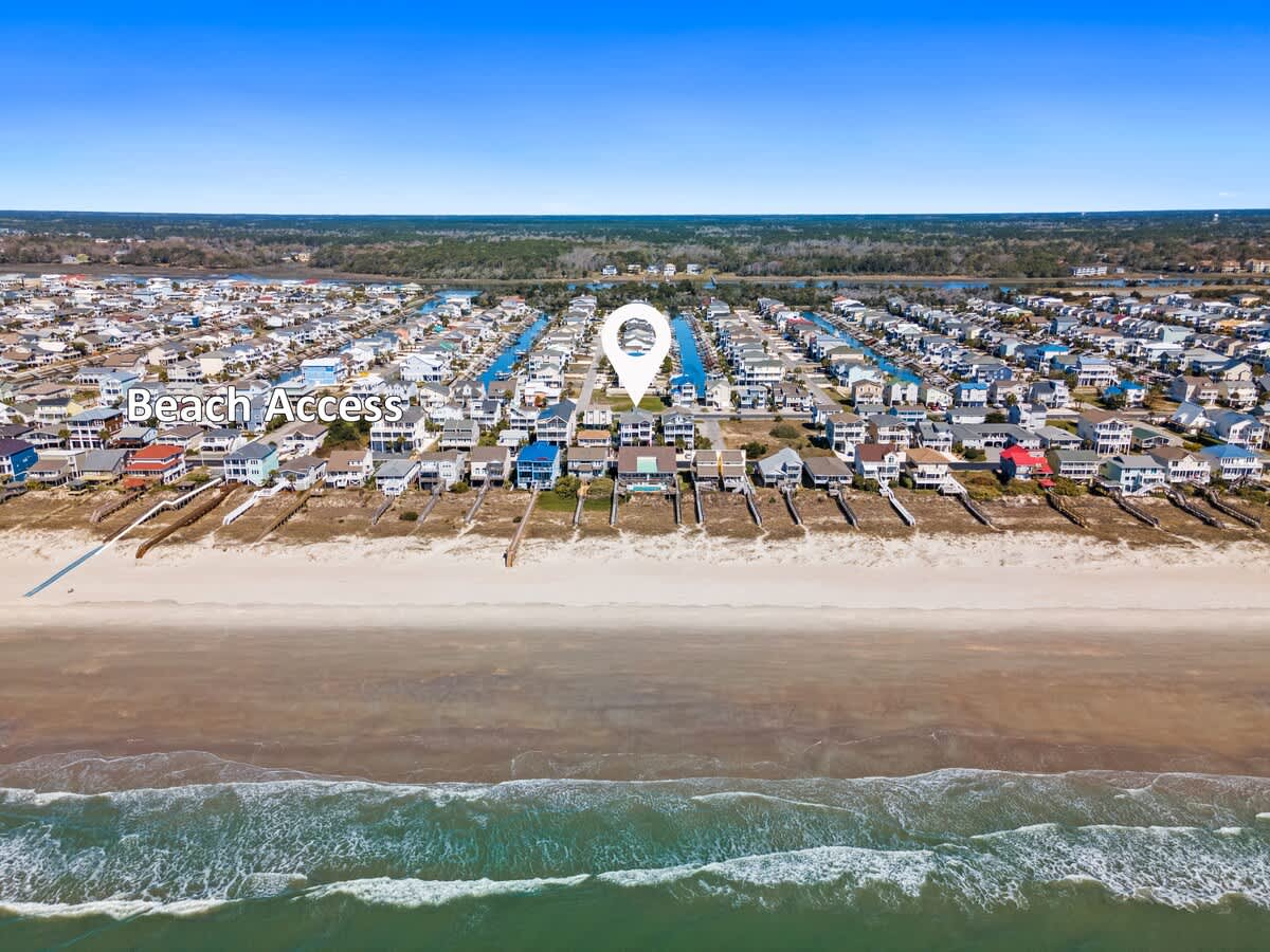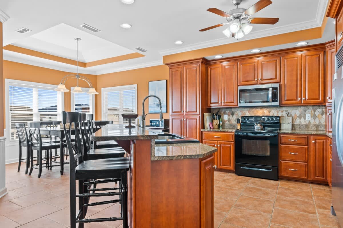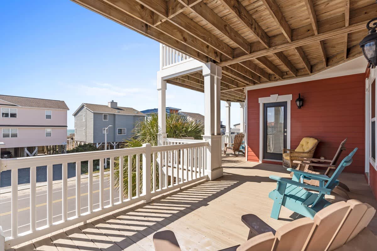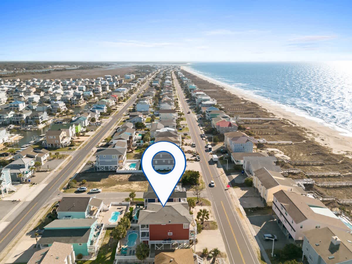 Welcome to Cherry Bomb, managed by Brunswick Vacation Rentals! Cherry Bomb has a reverse floor plan and offers stunning ocean views from the top floor where the living room, kitchen and dining room are located. The spacious and very comfortable living room offers two plush couches and a love seat that surround a large flat-screen Smart TV with cable. The kitchen is fully stocked and has beautiful stone countertops, a large kitchen island, and offers appliances including a commercial refrigerator and separate refrigerator specifically for your drinks. There's plenty of seating available for meal times with two tables offering seating for 11, and 3 additional seats which can be found along the kitchen island, for a total of 14. Kitchen amenities include a tea kettle, drip coffee maker, toaster, blender, mixer, and crockpot.