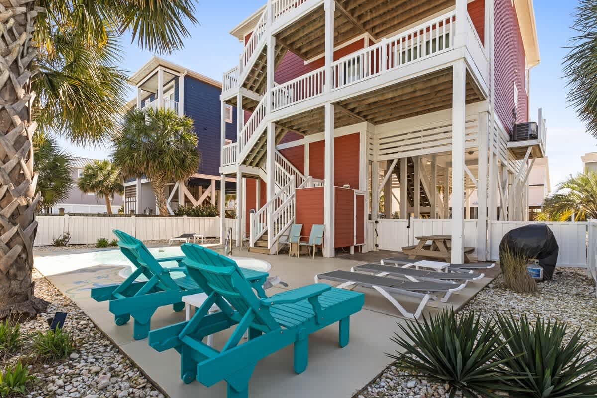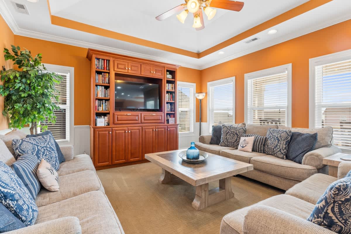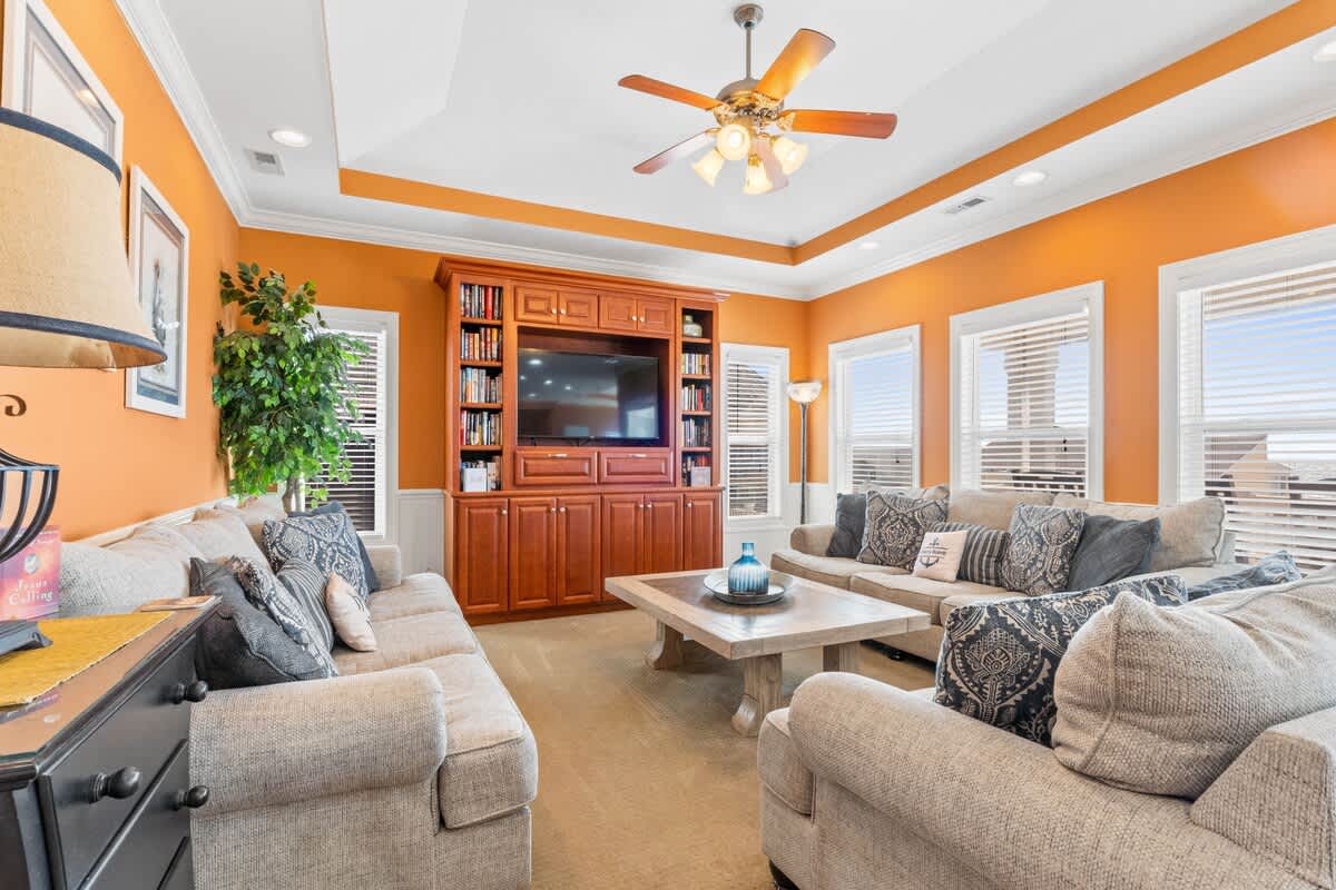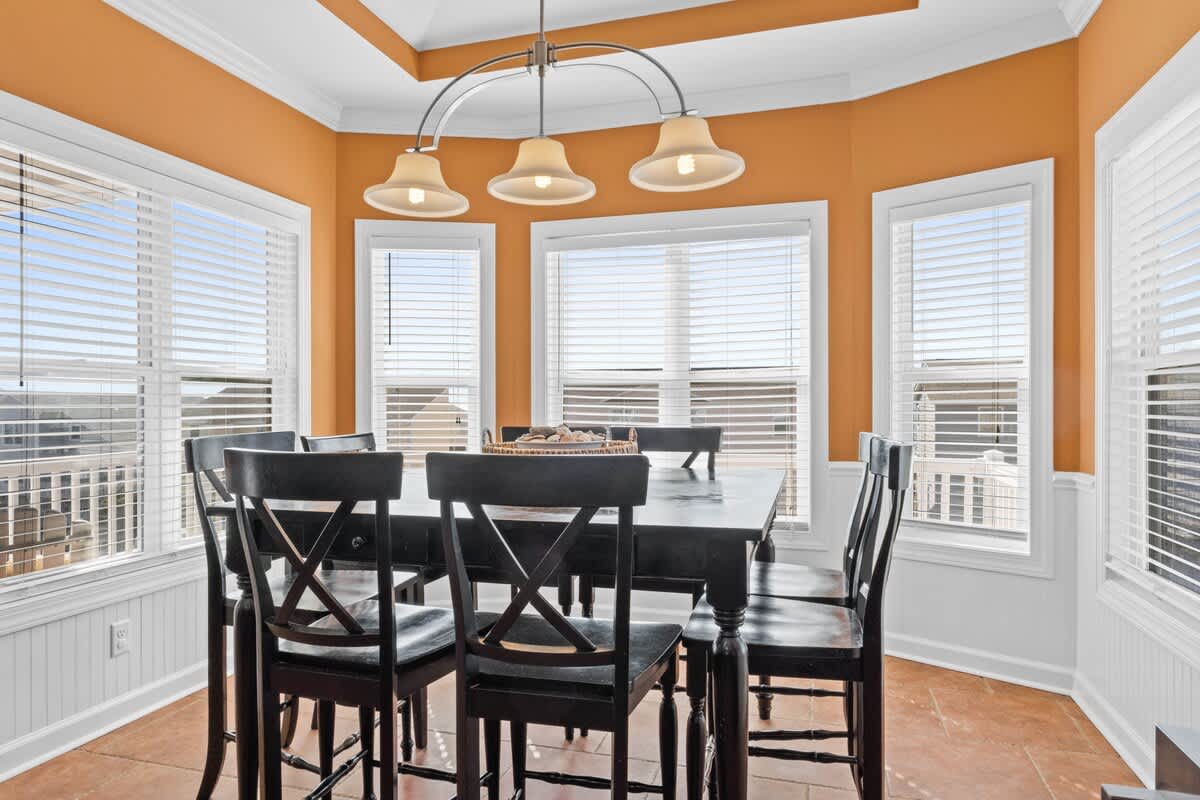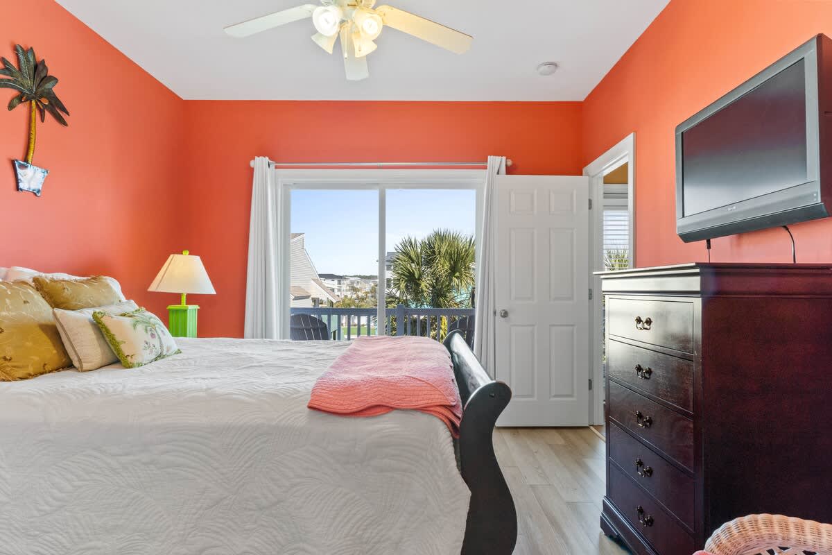 Welcome to Cherry Bomb, managed by Brunswick Vacation Rentals! Cherry Bomb has a reverse floor plan and offers stunning ocean views from the top floor where the living room, kitchen and dining room are located. The spacious and very comfortable living room offers two plush couches and a love seat that surround a large flat-screen Smart TV with cable. The kitchen is fully stocked and has beautiful stone countertops, a large kitchen island, and offers appliances including a commercial refrigerator and separate refrigerator specifically for your drinks. There's plenty of seating available for meal times with two tables offering seating for 11, and 3 additional seats which can be found along the kitchen island, for a total of 14. Kitchen amenities include a tea kettle, drip coffee maker, toaster, blender, mixer, and crockpot.