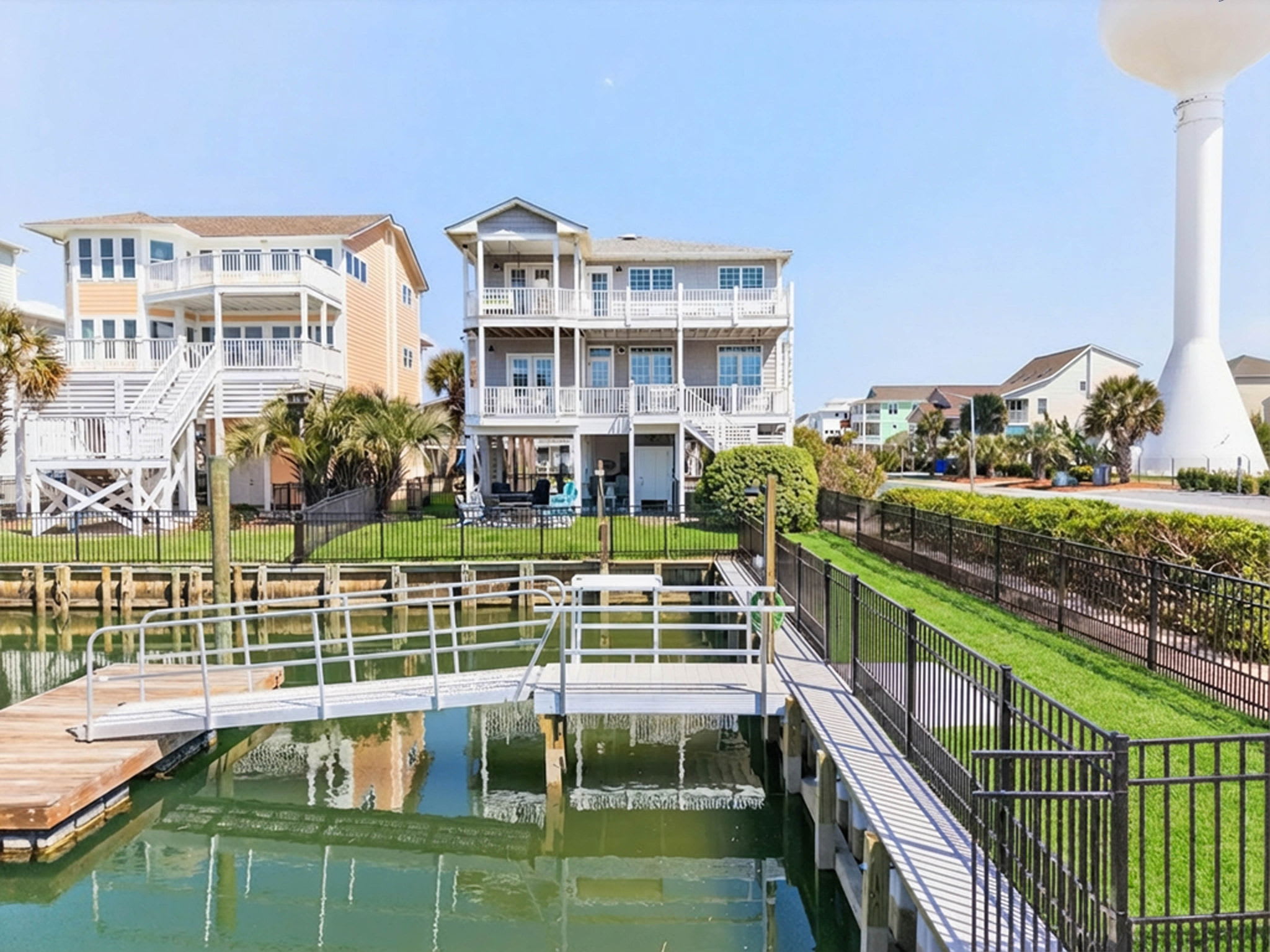 Enjoy both canal and ocean views from the upper deck, adorned with lounge chairs and rocking chairs! The upper deck can also be accessed through the upstairs master suite. The second floor has an additional half bath, as well as a laundry room.