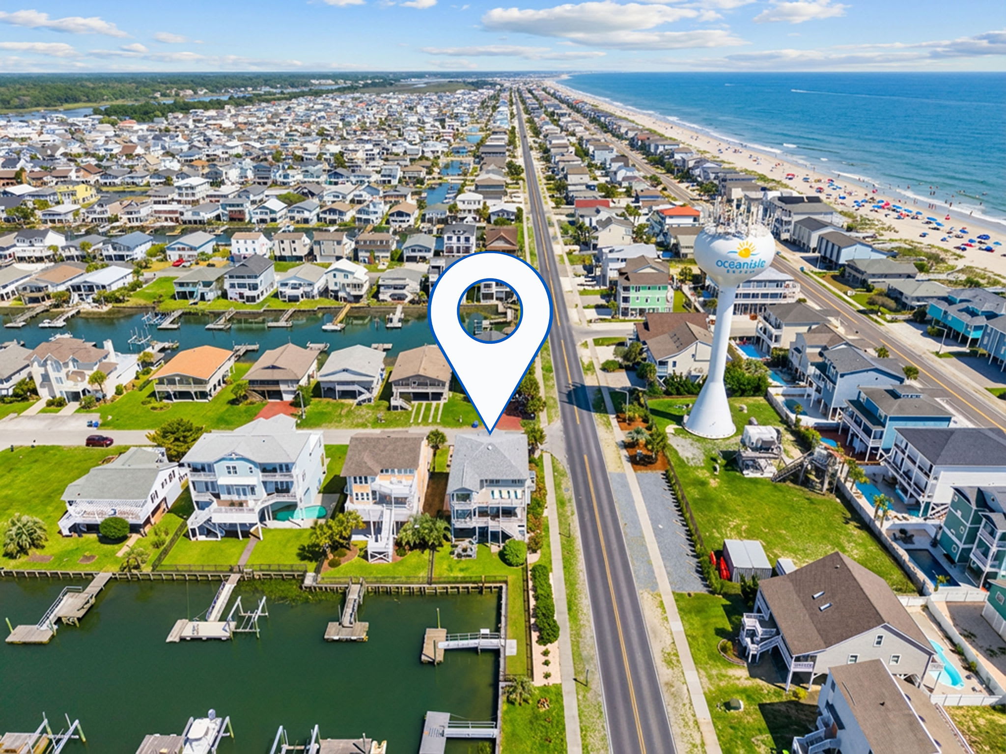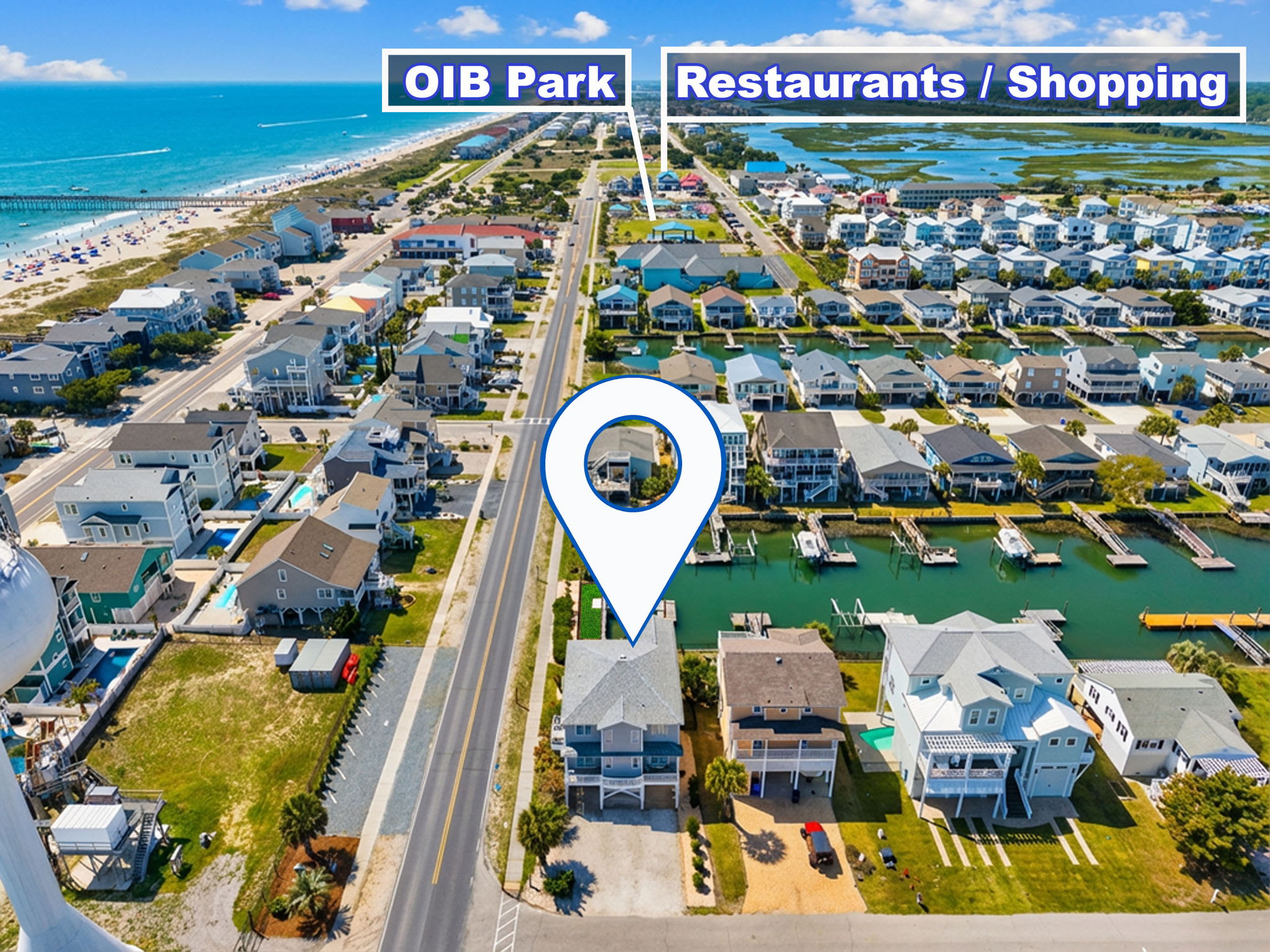 Located on one of the first canals after you cross the bridge, this 5 bedroom, 6 full and 2 half bathroom home is the perfect location! Just 2 blocks from the public beach access, Fishful Thinking also offers a boat dock, ocean views, canal access, paddle board and kayaks, a fully stocked kitchen with wet bar, new outdoor bar, fenced yard, and much more. This beautiful home is within short walking distance to restaurants, bars, shops, pier, putt putt, arcade, playground, the town museum, and more! Avoid paying for parking by renting the closest home to the beach while being on the canal! The Ocean Isle community center, which has a public beach access with showers and restrooms, is just a 3 minute walk away. During the summer months, this community center also offers a variety of children's programs.