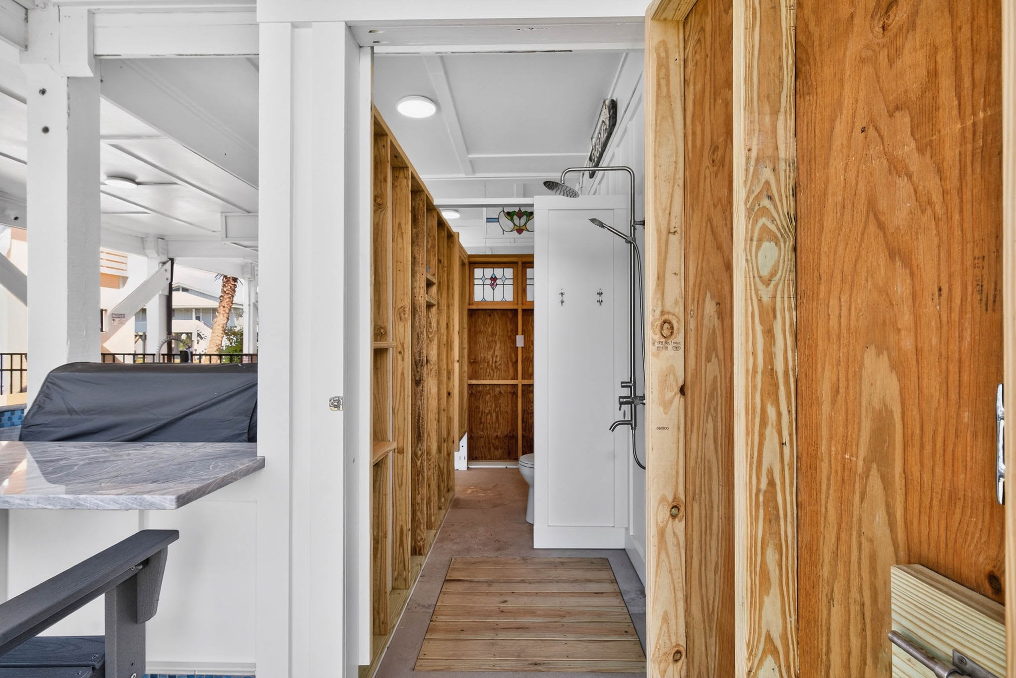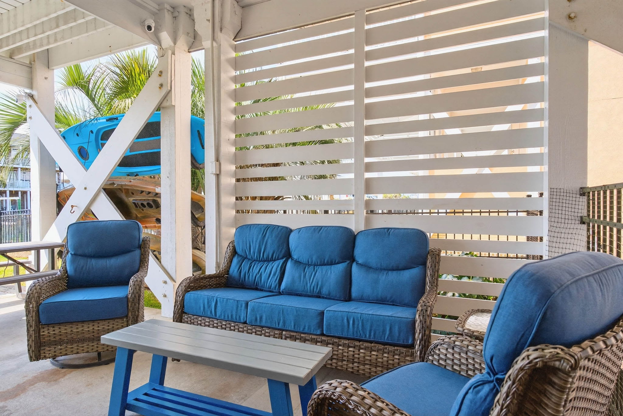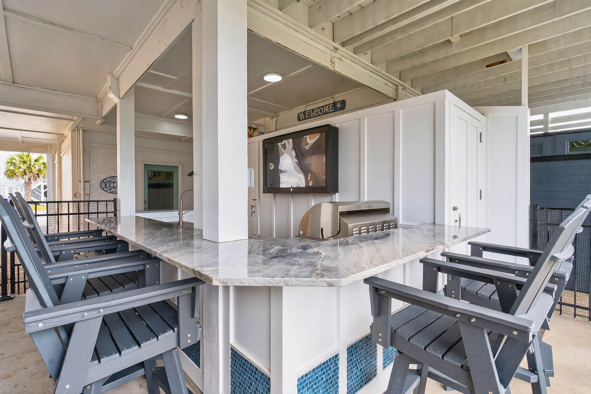 Newly constructed in 2026, there is now a beautiful spacious bar area under the house deck! Beautiful and modern, you will have plenty of room with seating at the bar, a sitting area, a picnic table, and even more seats in the backyard. Complete with a TV, refrigerator, sink and new Blaze grill - you have all the perfect ingredients for families and friends to spread out and enjoy themselves! And even better - there is a full bathroom adjoining it too, offering convenience while relaxing as well as being able to easily rinse off from the beach.