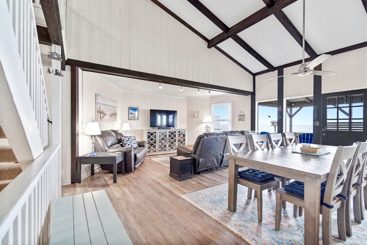 Under new management, Jay's Nest has recently undergone a ton of updates, added new furniture and is ready to host you and your family for your next beach getaway! This freshly renovated Ocean Front home sleeps 12 and with all the many windows, offers stunning ocean views and an abundance of natural light.