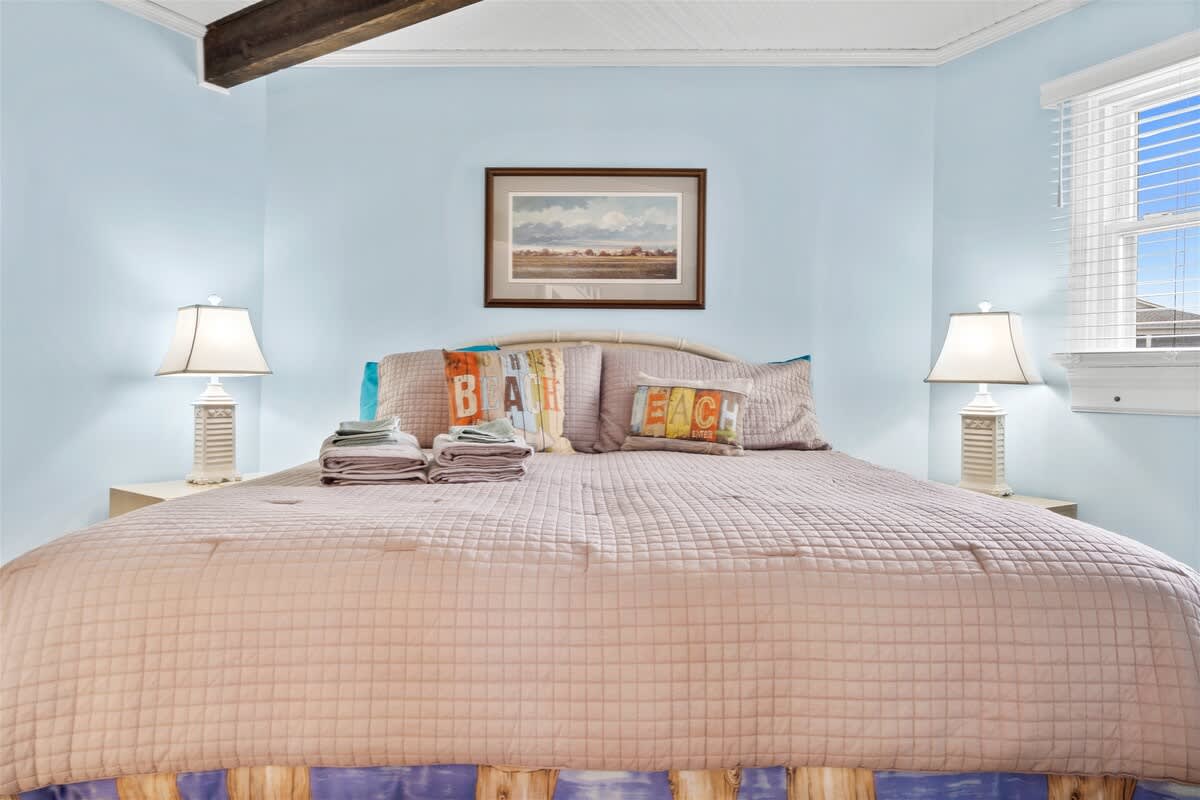If you want to walk outside and be right on the beach, Jay's Nest is the home you're looking for! Walk out the back door and into the salty air where you can relax on one of two spacious decks equipped with chairs, loungers, a bench and a table, in case you want to eat beachside. Also at this home you will find corn hole, boogie boards, an outdoor shower and a hammock - Everything you would ever need for the ultimate beach vacation!