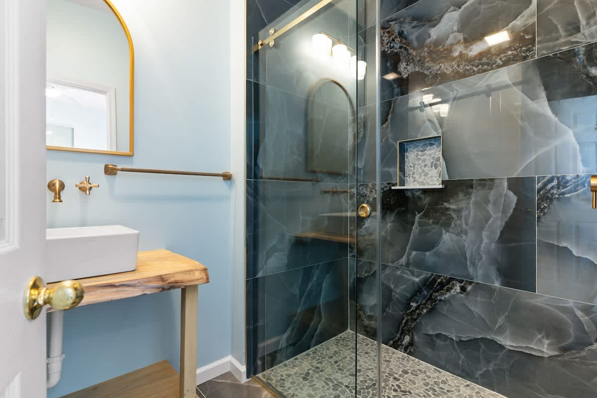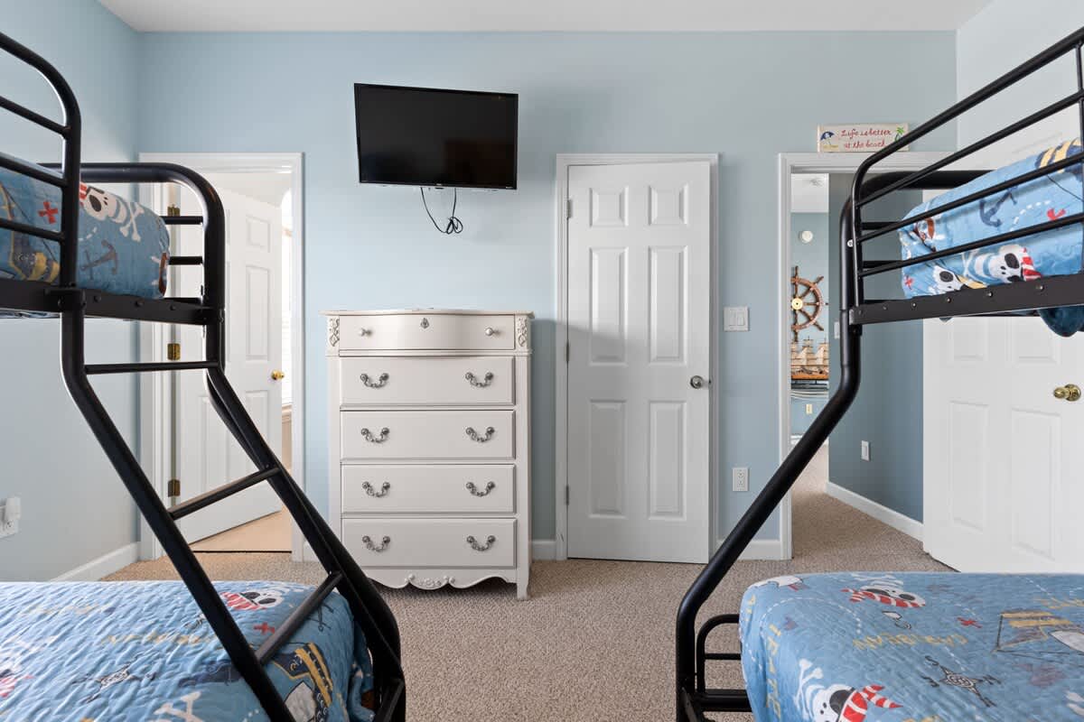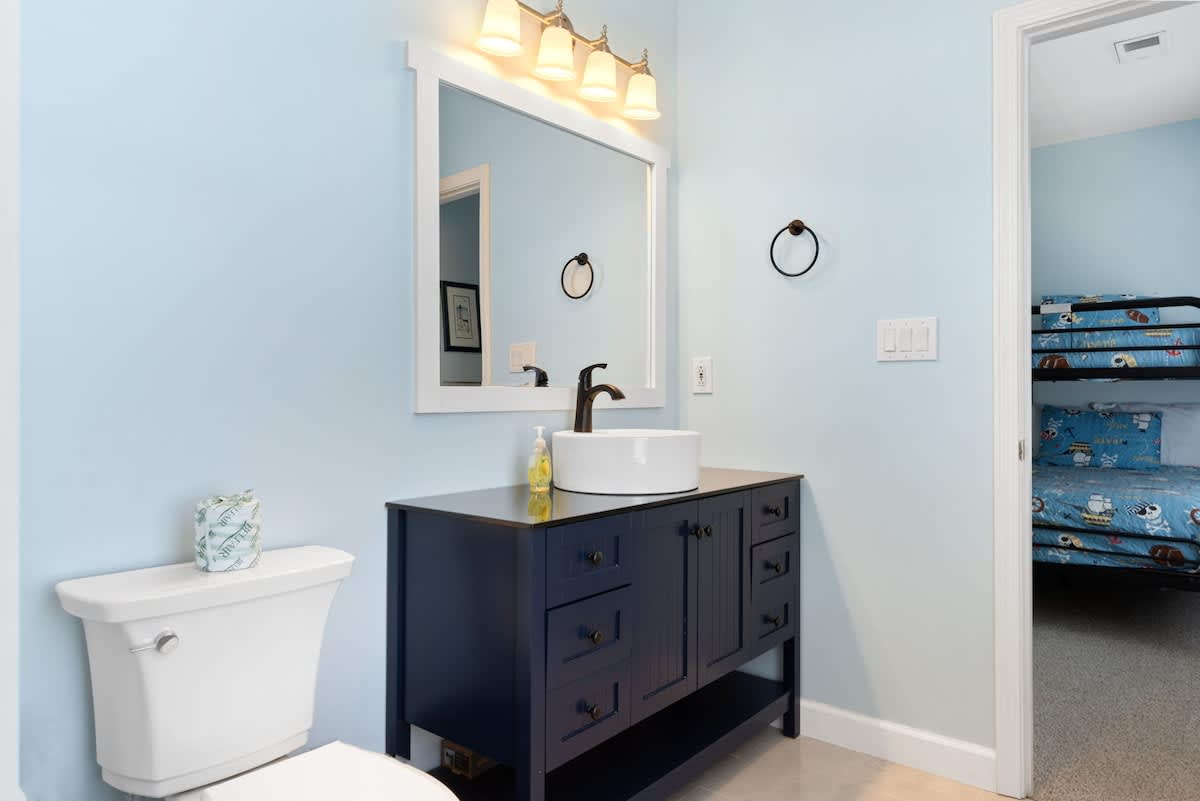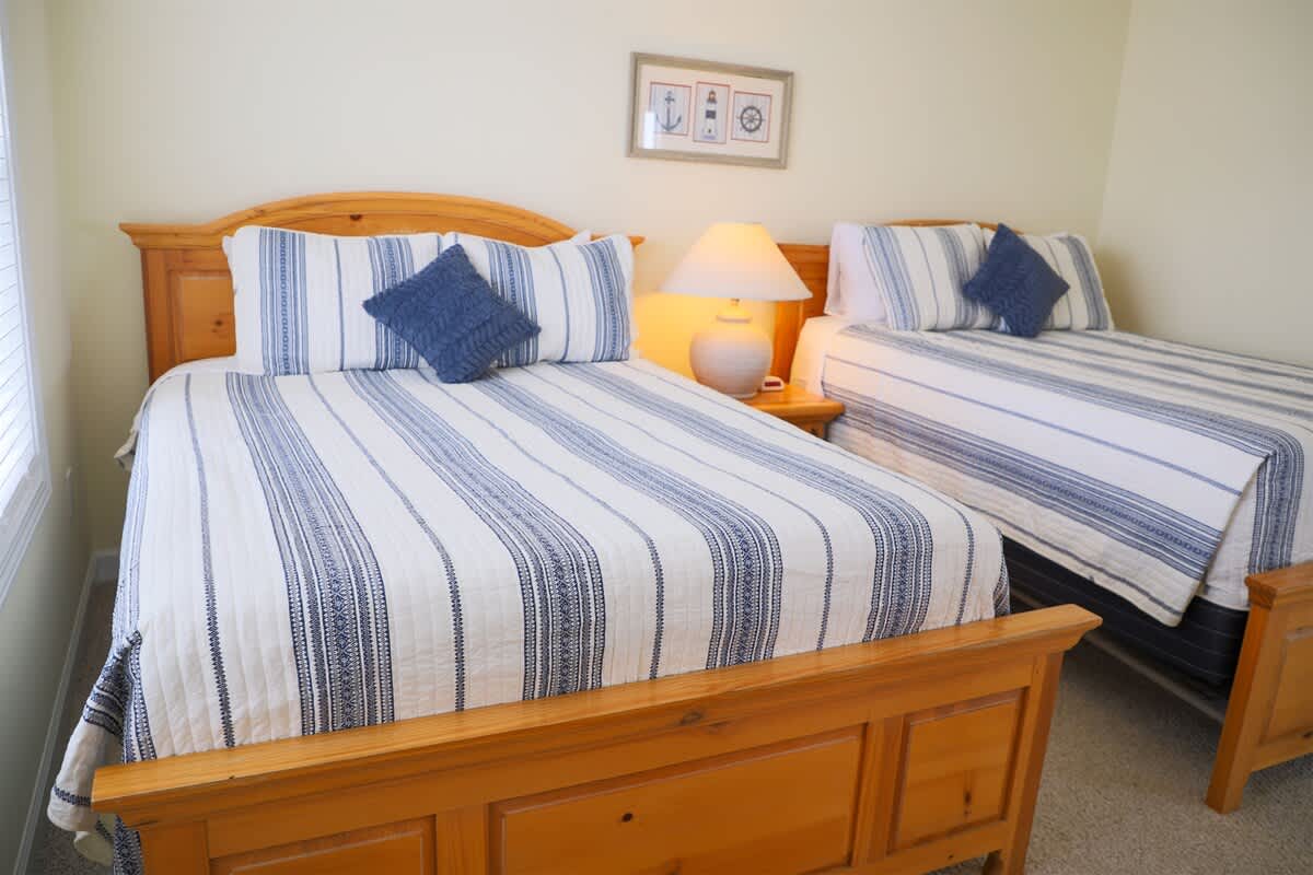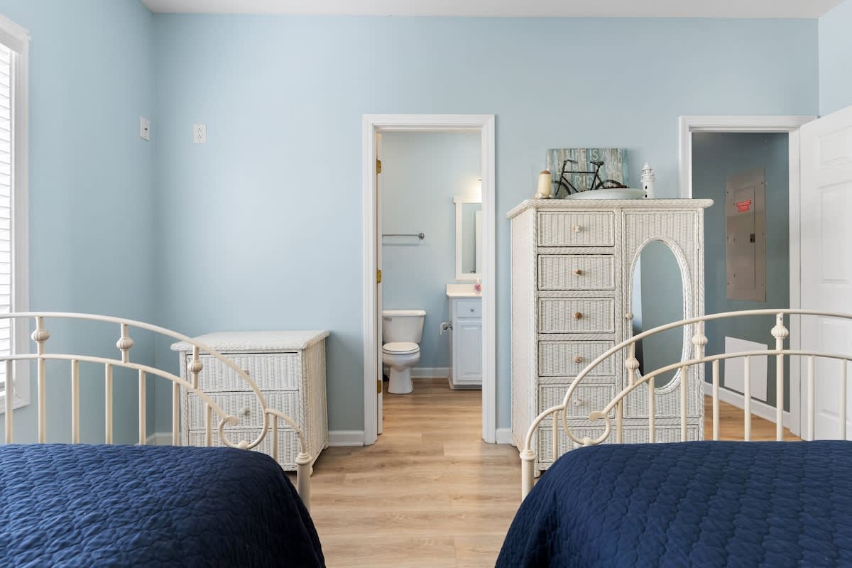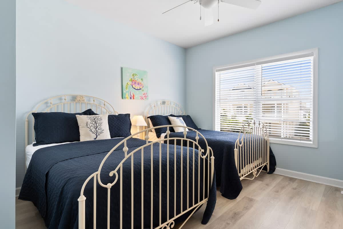 Upstairs you will find the tastefully re-decorated master suite which has a king bed and offers gorgeous ocean views from the sliding glass door as well as access to the upper deck with new deck furniture. The street-side bedrooms include one room with a queen bed and another featuring 2 sets of bunk beds, full beds on the bottom and twin beds on top- perfect for kids!