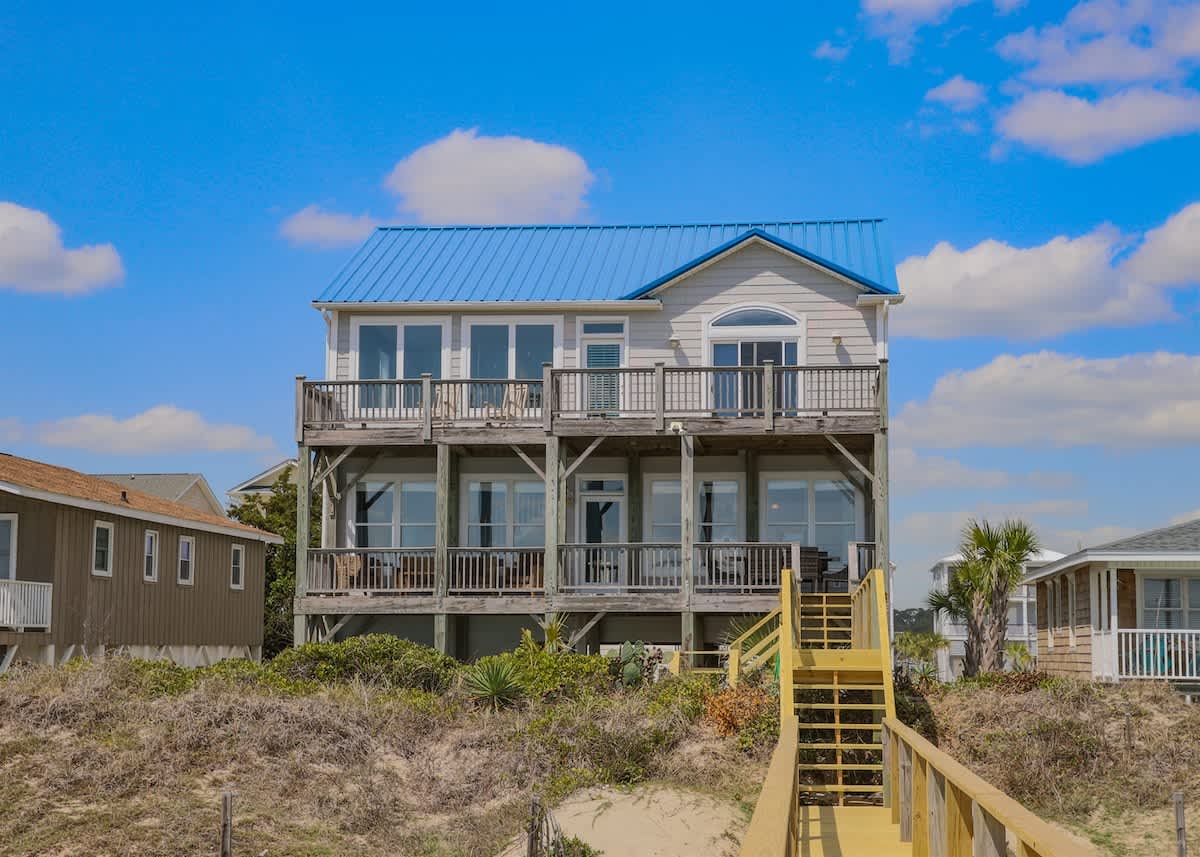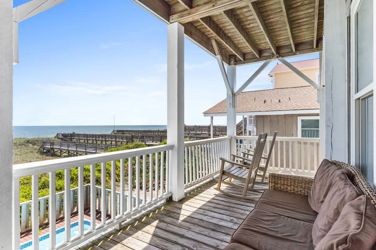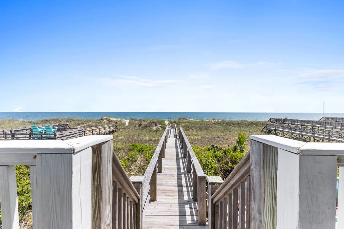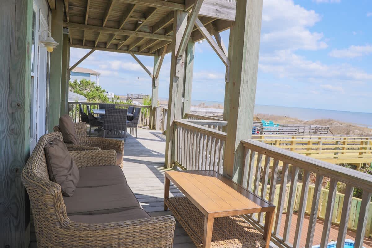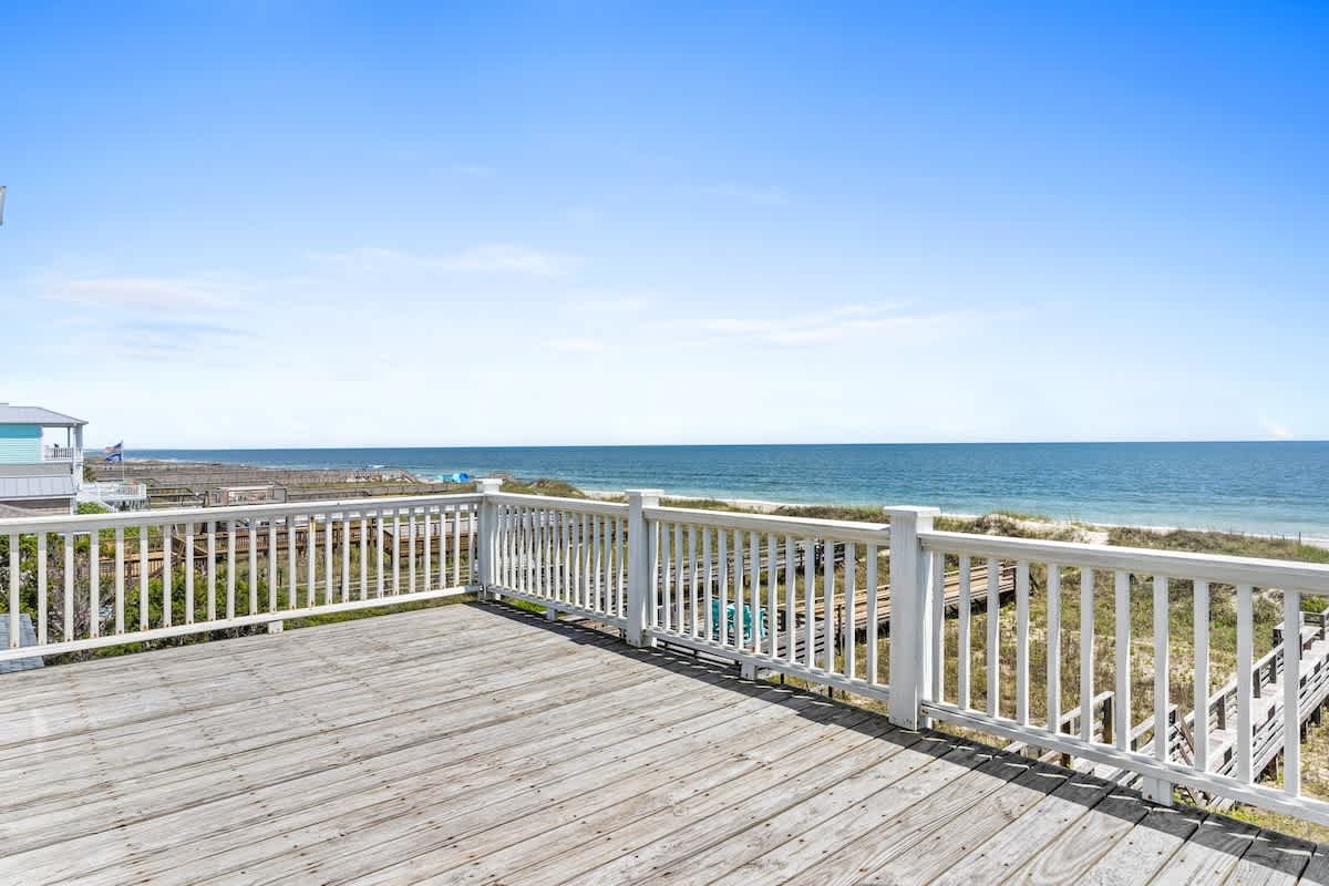 The ocean side of the house offers expansive multi-level decking for lounging, dining and catching that breathtaking sunrise and sunset! Your own private walkway takes you directly to the beach for hours of fun in the sun. This home is equipped with plenty of chairs, umbrellas and beach toys so make sure to grab them from the storage unit on your way down there!