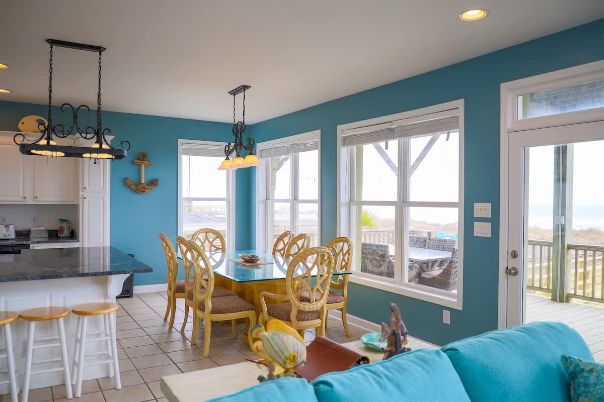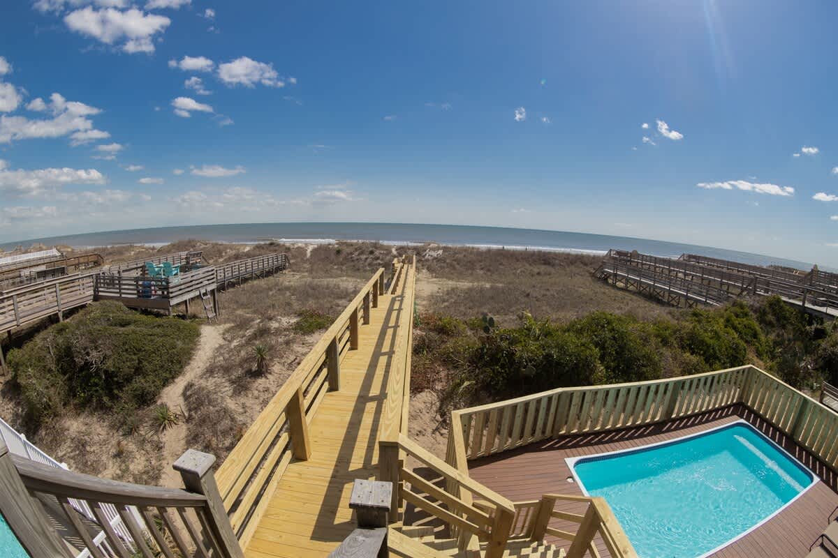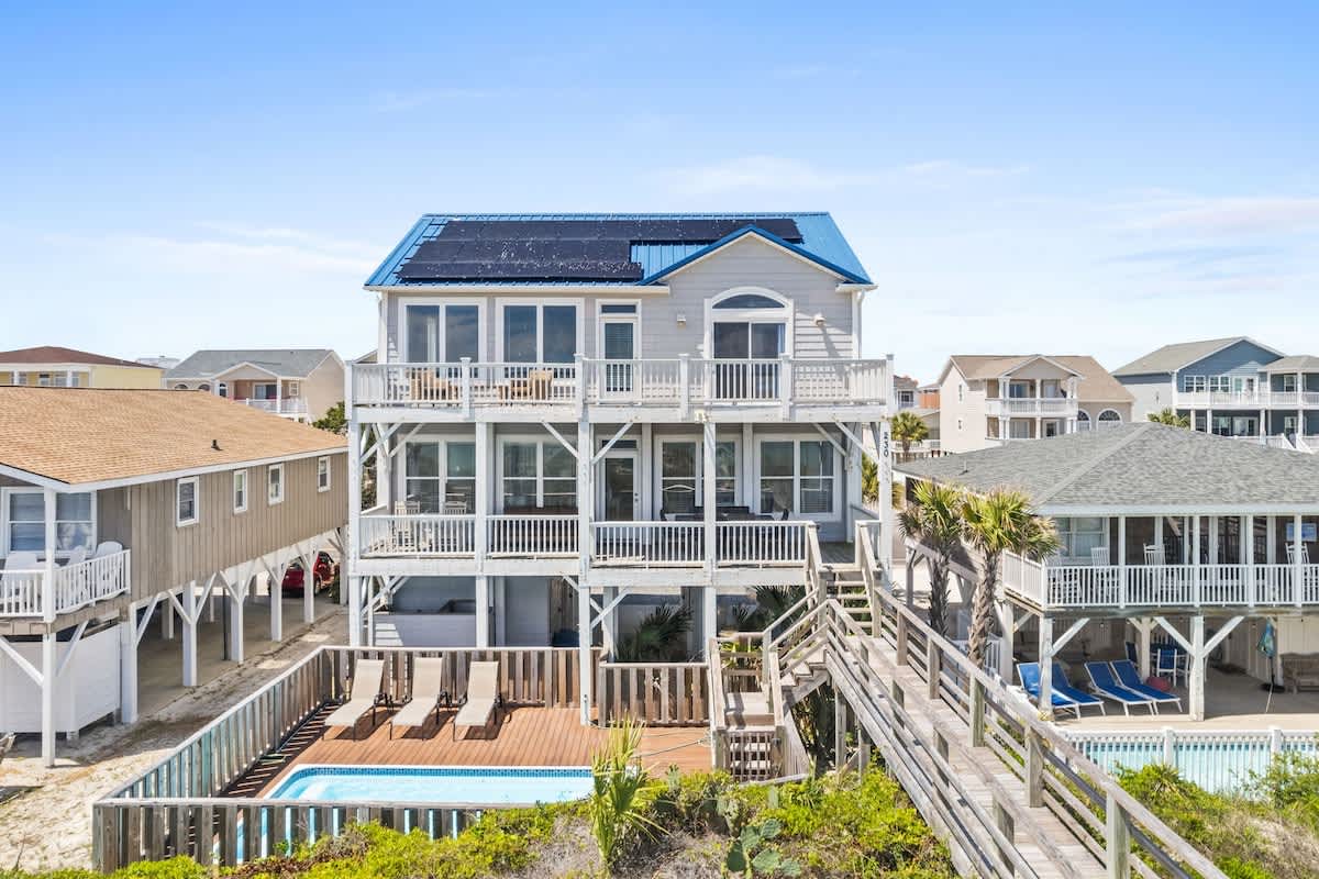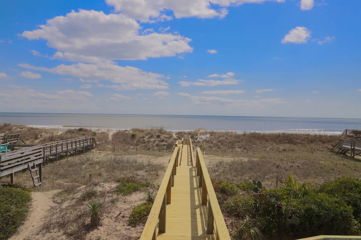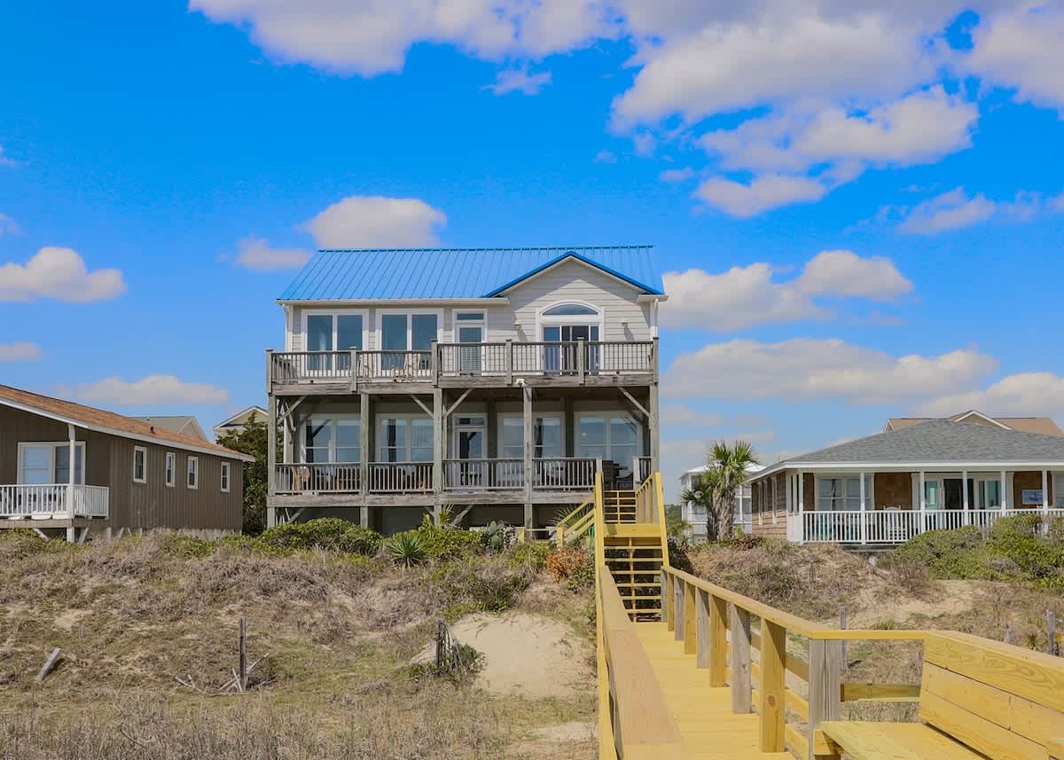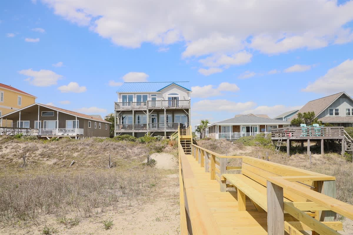 The ocean side of the house offers expansive multi-level decking for lounging, dining and catching that breathtaking sunrise and sunset! Your own private walkway takes you directly to the beach for hours of fun in the sun. This home is equipped with plenty of chairs, umbrellas and beach toys so make sure to grab them from the storage unit on your way down there!