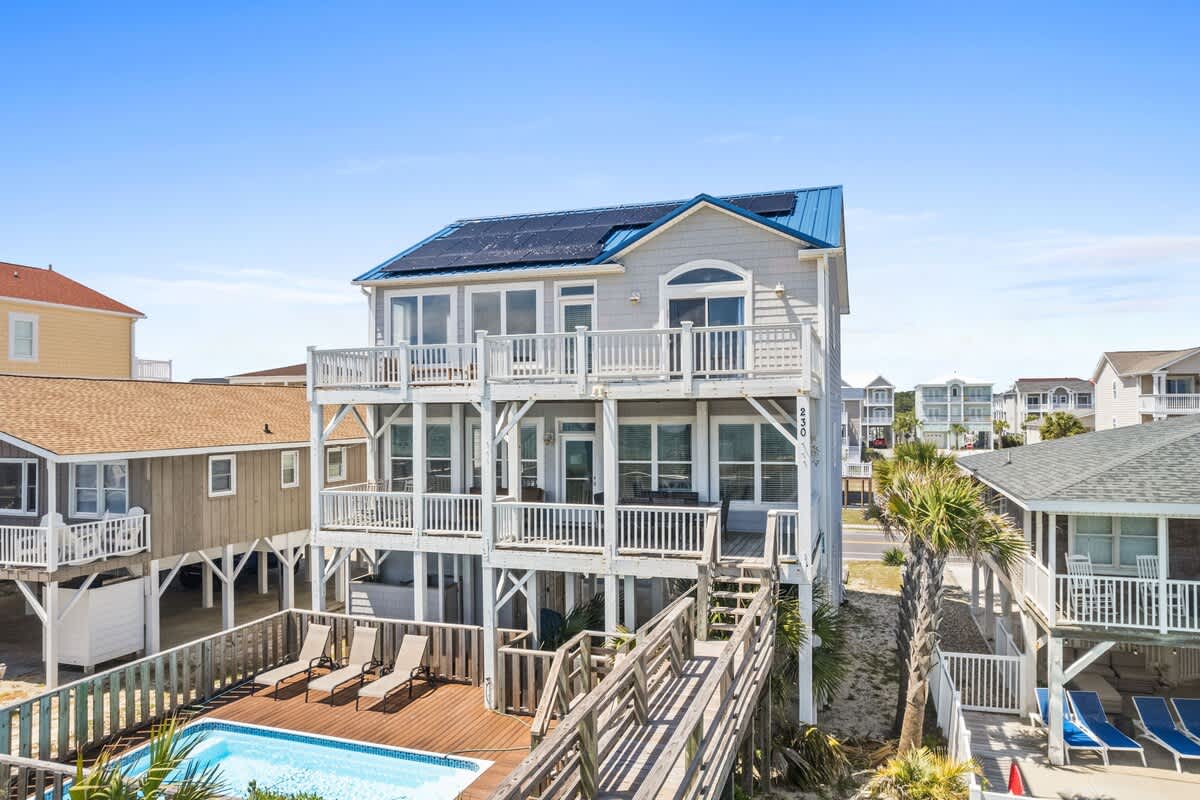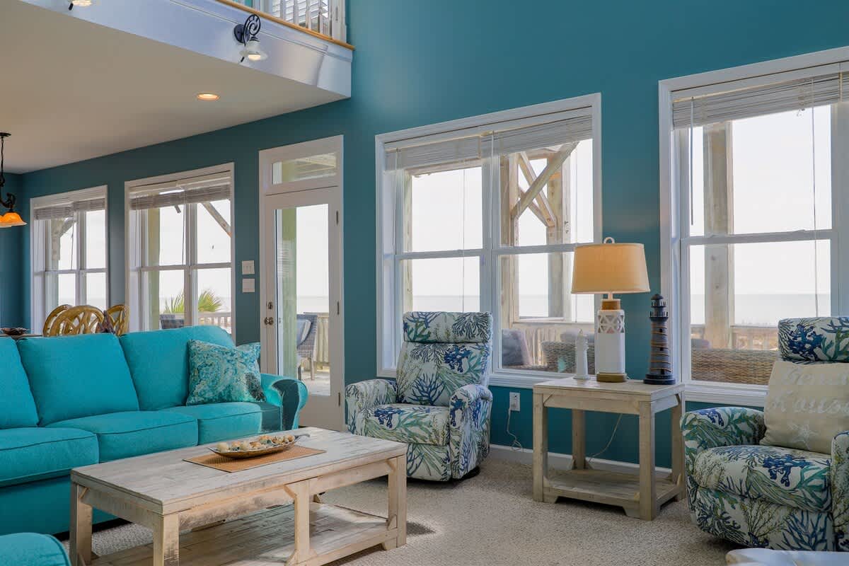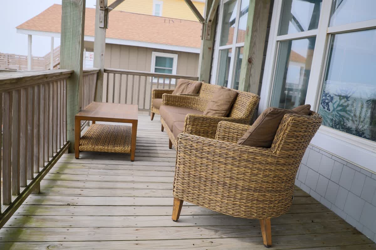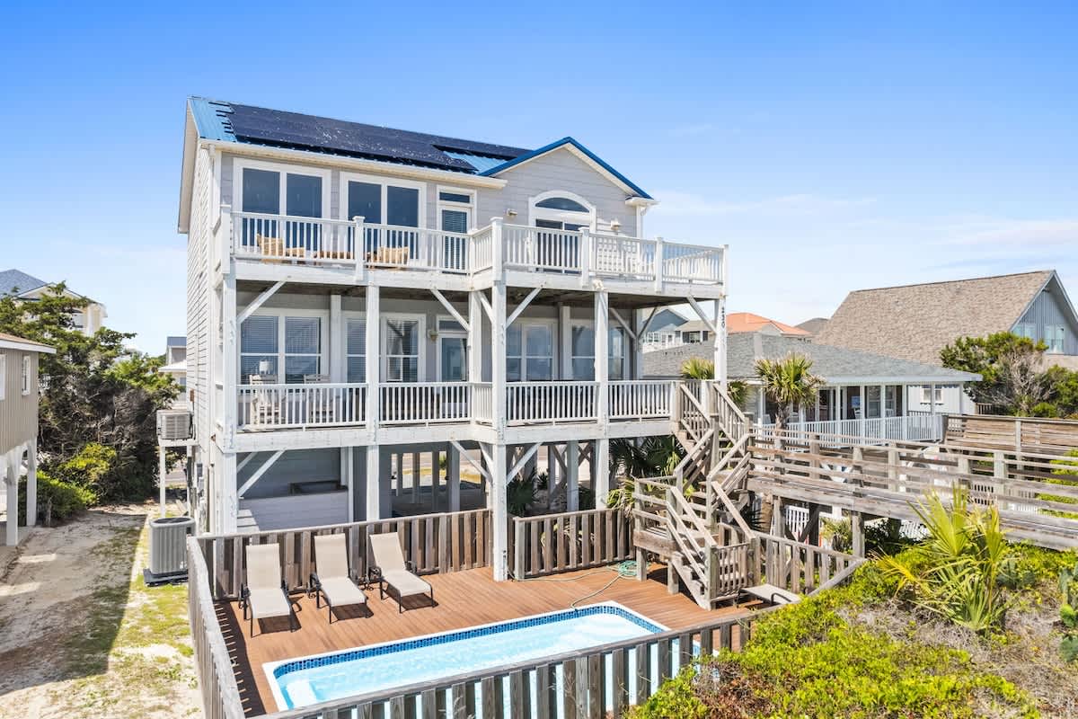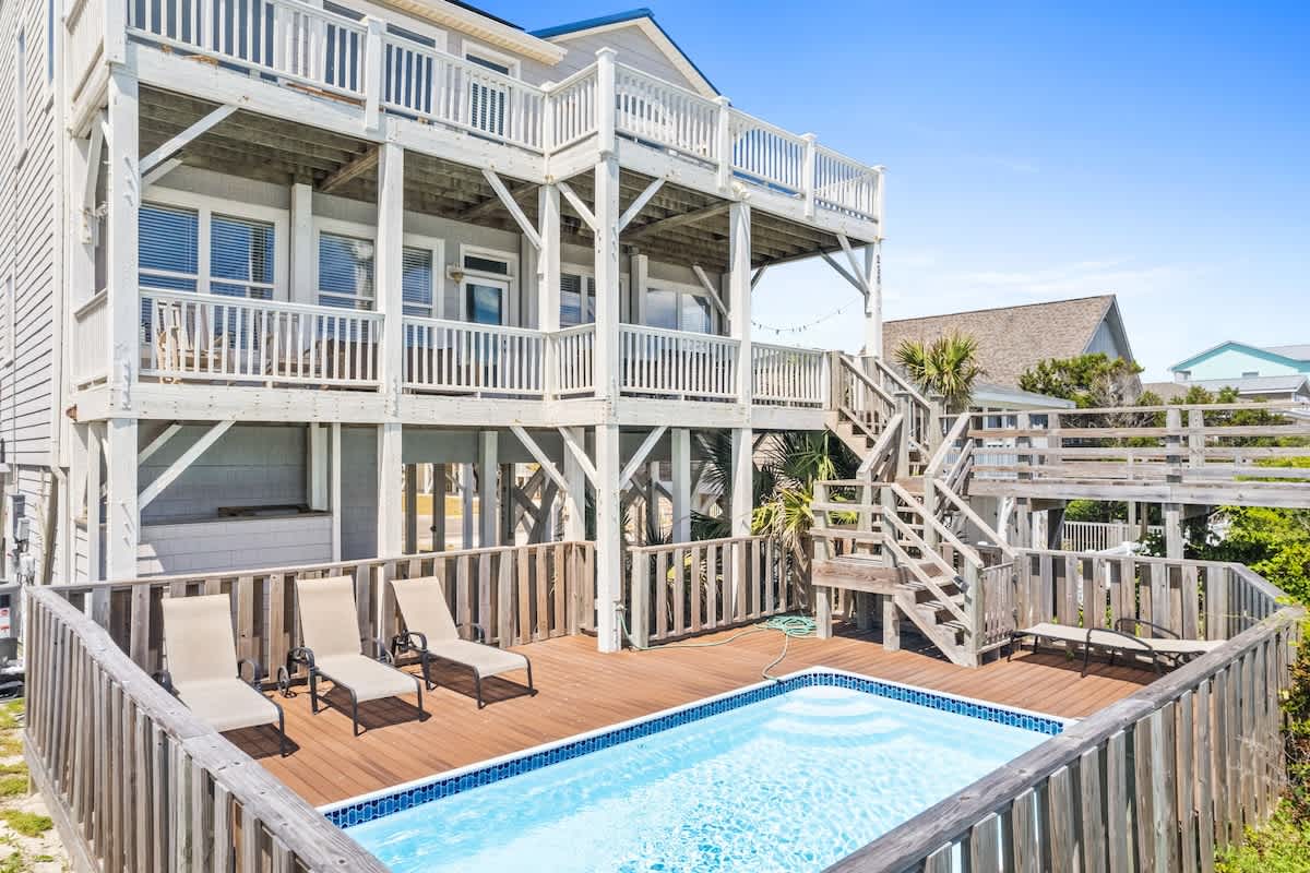 The ocean side of the house offers expansive multi-level decking for lounging, dining and catching that breathtaking sunrise and sunset! Your own private walkway takes you directly to the beach for hours of fun in the sun. This home is equipped with plenty of chairs, umbrellas and beach toys so make sure to grab them from the storage unit on your way down there!