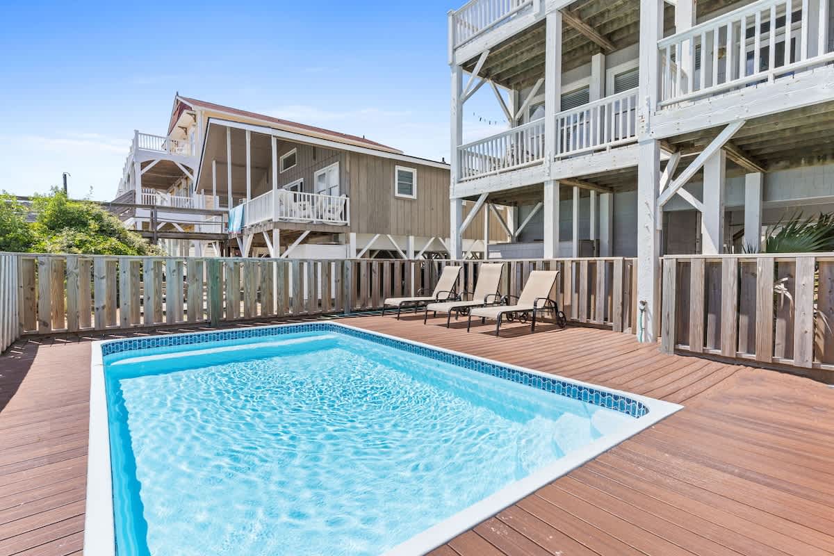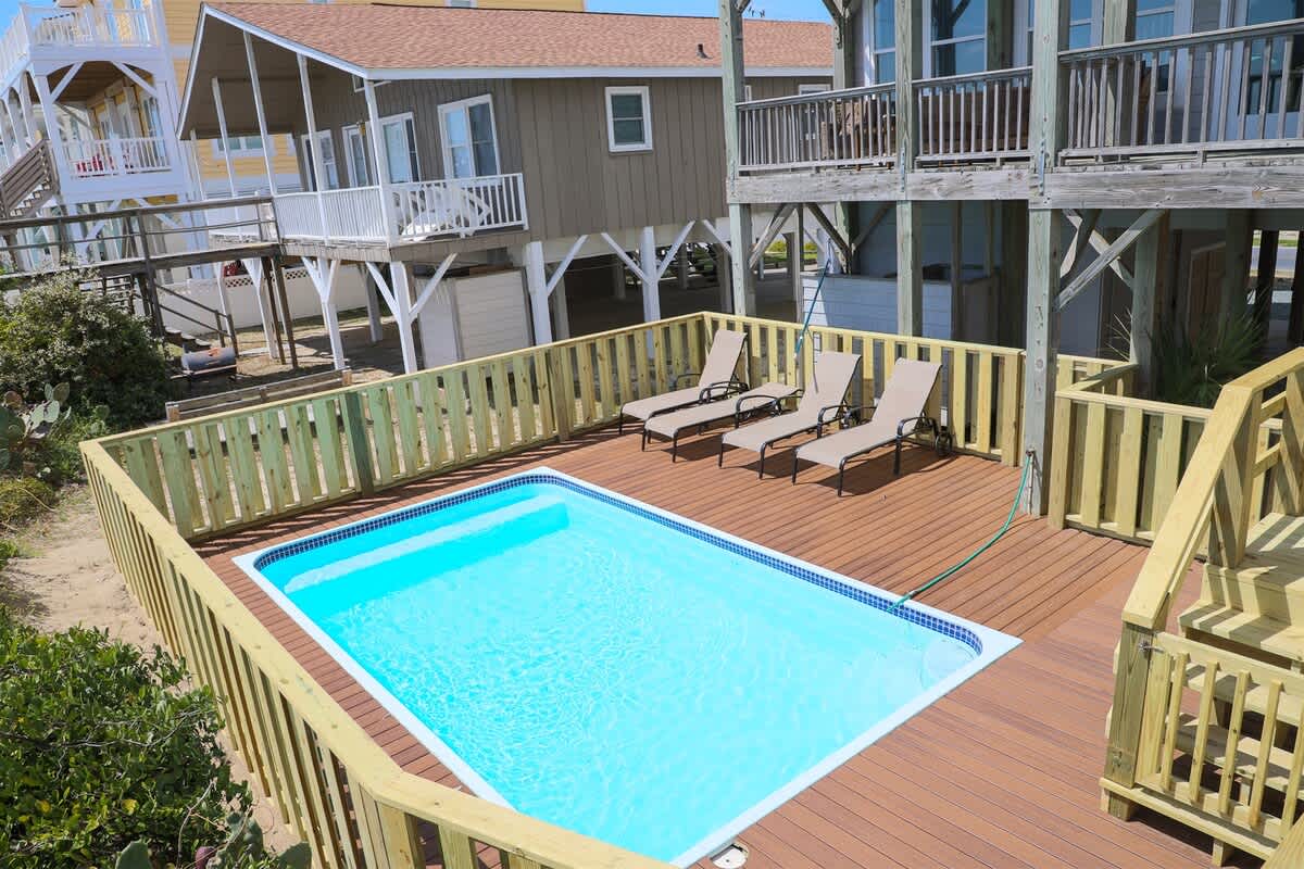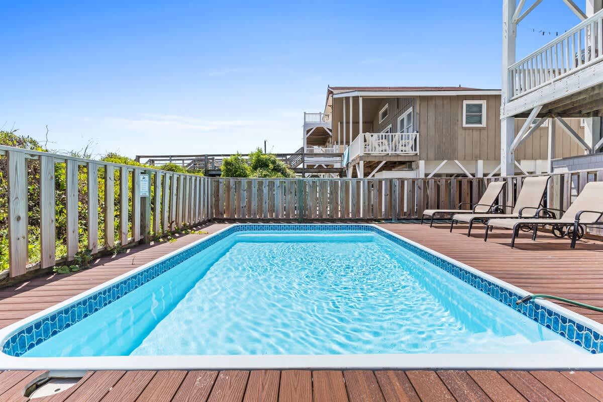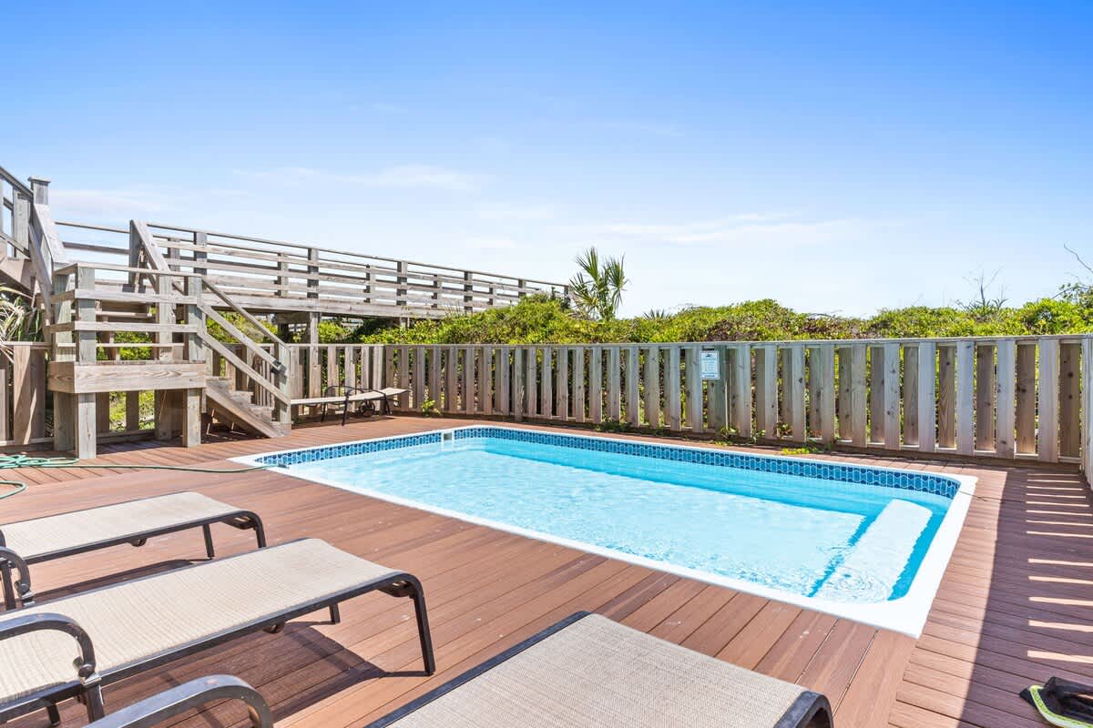 After you’ve had your fill of the beach, head back up to the house to enjoy your own private pool! There’s more than enough deck space for soaking up the sun in one of the many lounge chairs and nothing beats a cool dip to help you relax. Convenient outdoor shower for rinsing off the sand before entering the pool or house.
