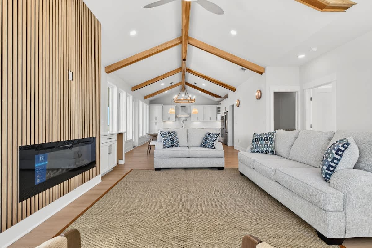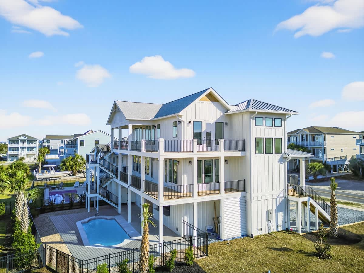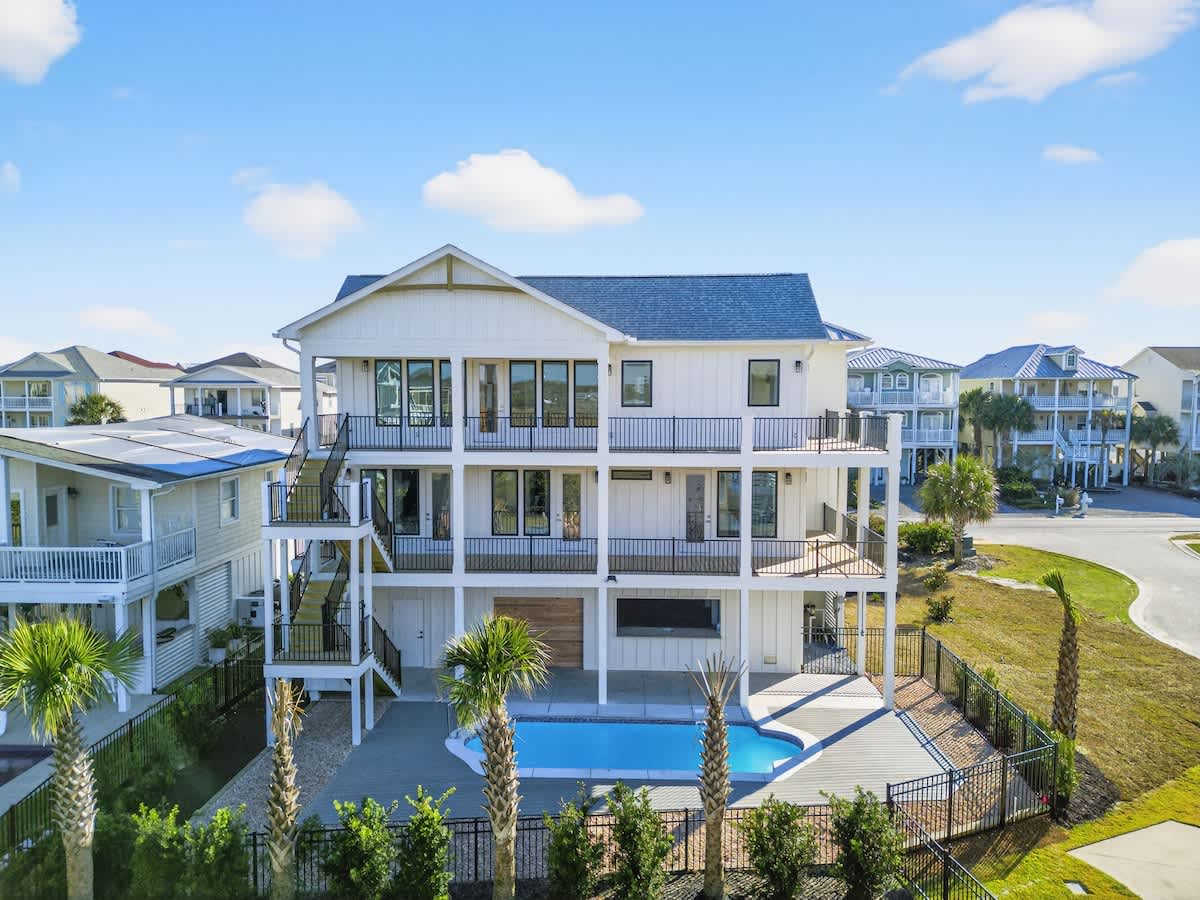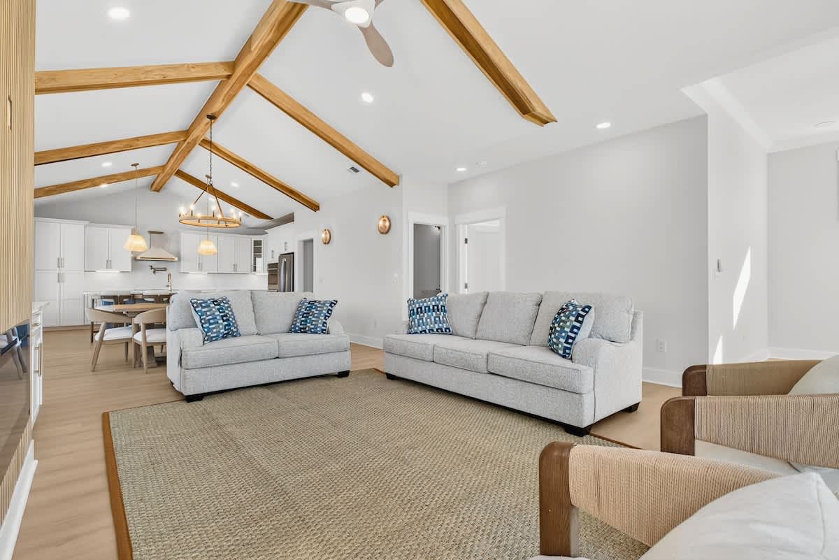 Welcome to your ideal getaway at Ocean Isle Beach! This stunning brand new six-bedroom, five-bathroom home can comfortably accommodate up to 17 guests, making it perfect for family reunions or gatherings with friends. Step inside to discover a spacious and inviting open floor plan that exudes a welcoming ambiance, ideal for relaxation and entertainment.