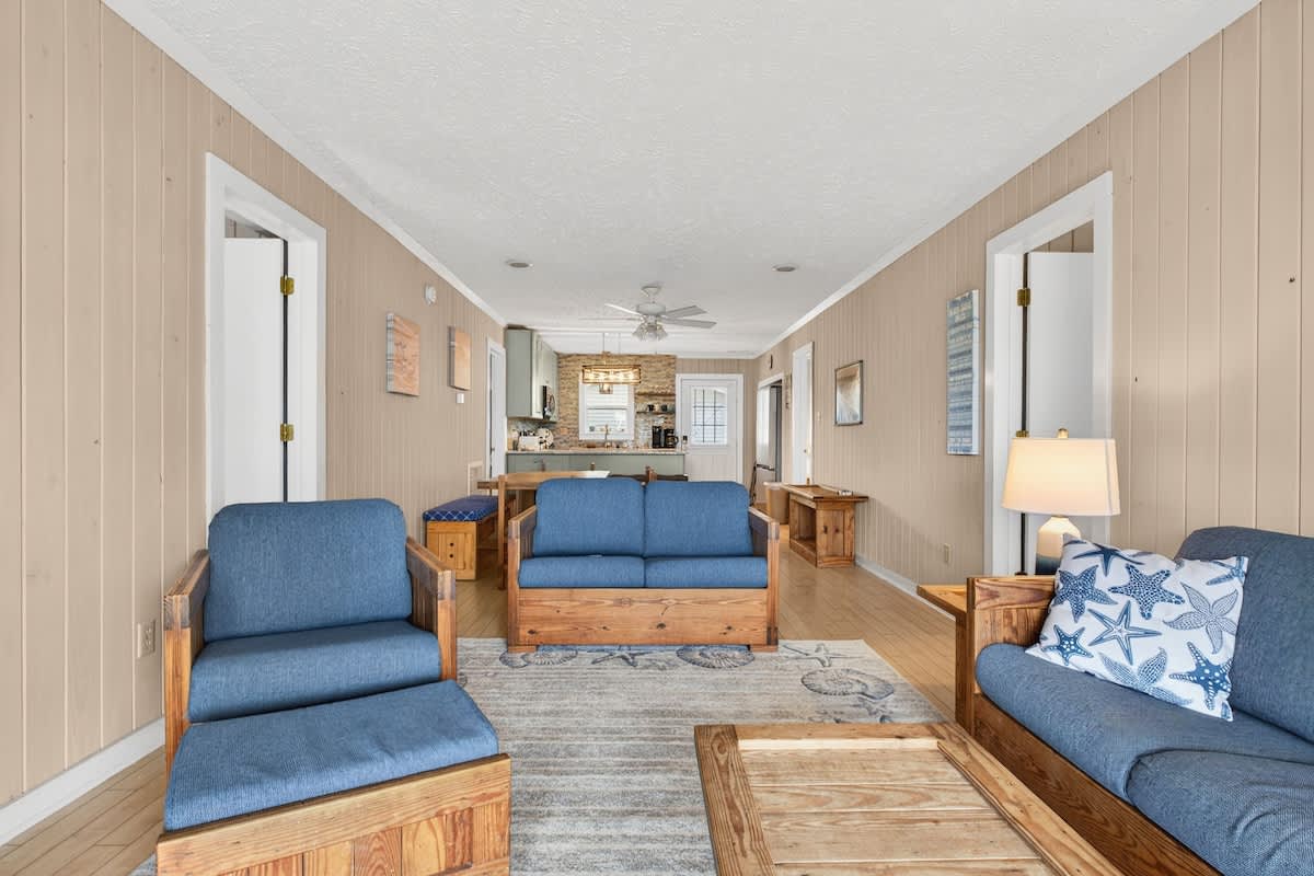 Starfish Oasis by Brunswick Vacation Rentals is a 4-bedroom, 2-bath beach house in Sunset Beach, NC that sleeps up to 10 guests—perfect for family vacations, group stays, and coastal getaways. Located on Sunset Beach Island just a short walk to the ocean, this beach rental features open-concept living, large bedrooms, covered front and back decks, and comfortable outdoor spaces designed for enjoying ocean breezes and laid-back beach living.
